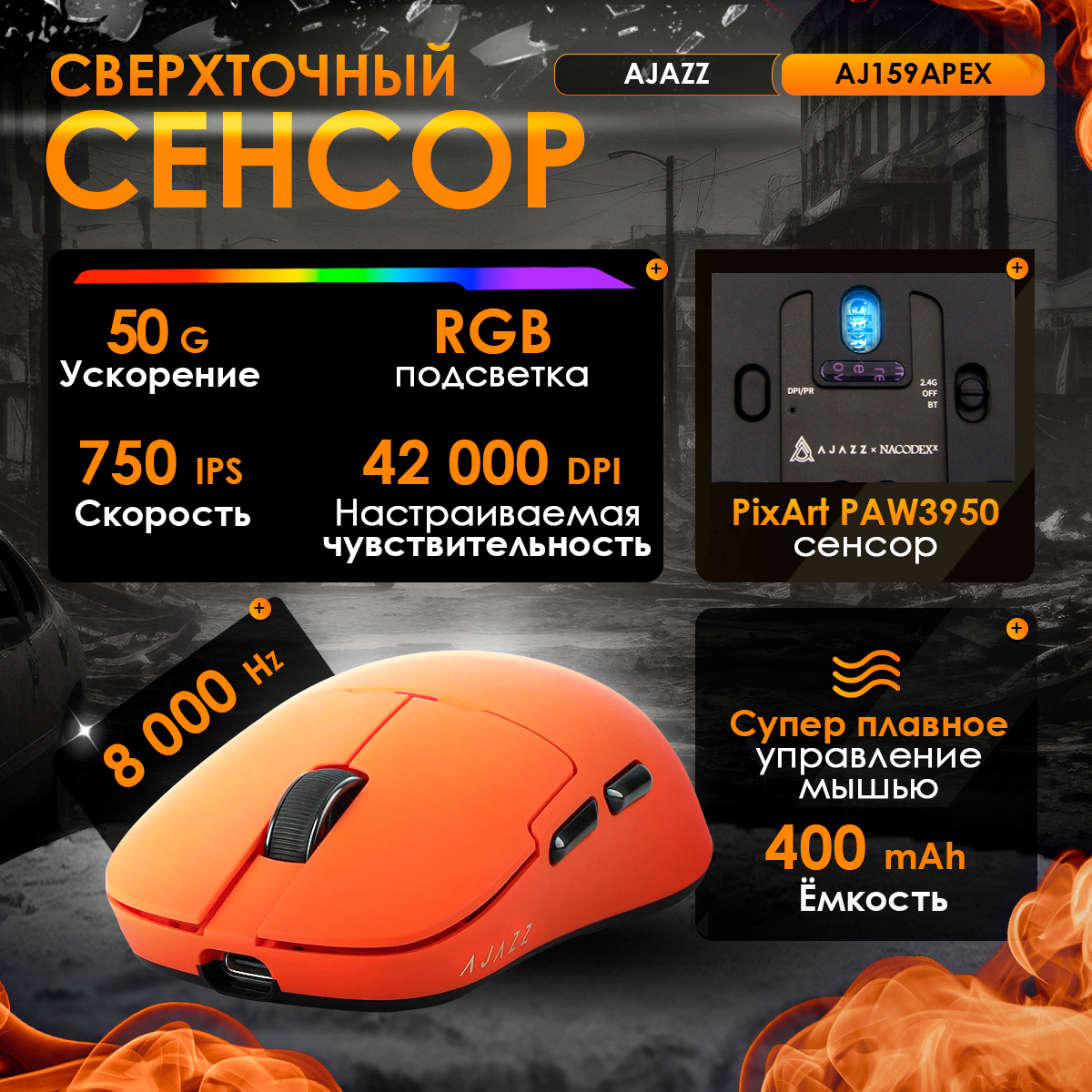 Купить Игровая беспроводная / проводная мышь AJAZZ AJ159APEX с док-станцией с доставкой по всей России.