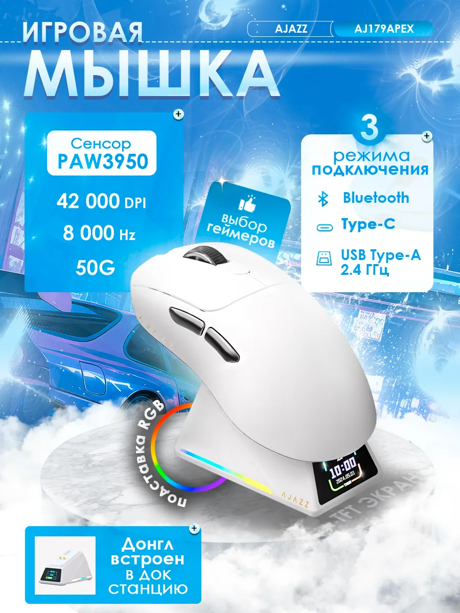 Купить Игровая беспроводная / проводная мышь AJAZZ AJ179APEX с док-станцией с доставкой по всей России.