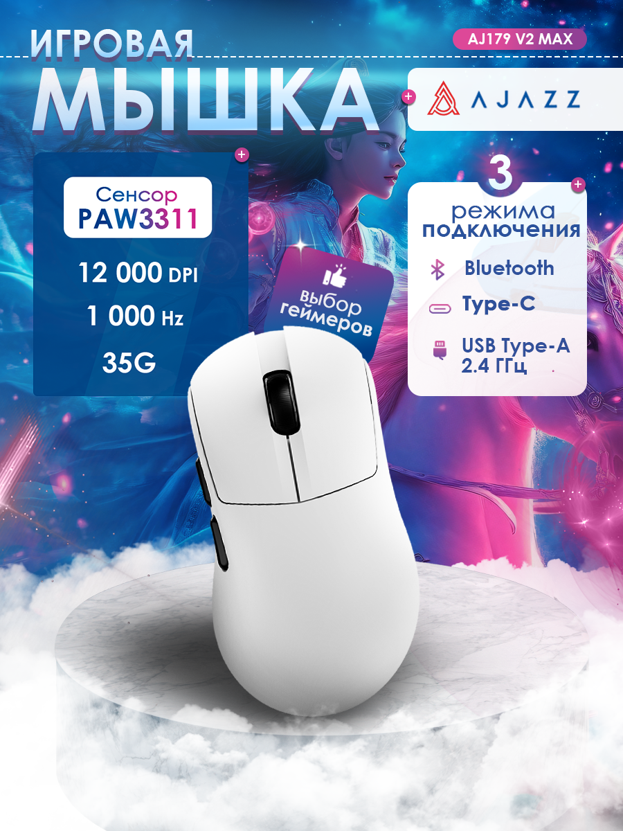 Игровая беспроводная / проводная мышь AJAZZ AJ179V2 MAX, PAW3311: сравнение цен, характеристики, фото, актуальное наличие и цены.