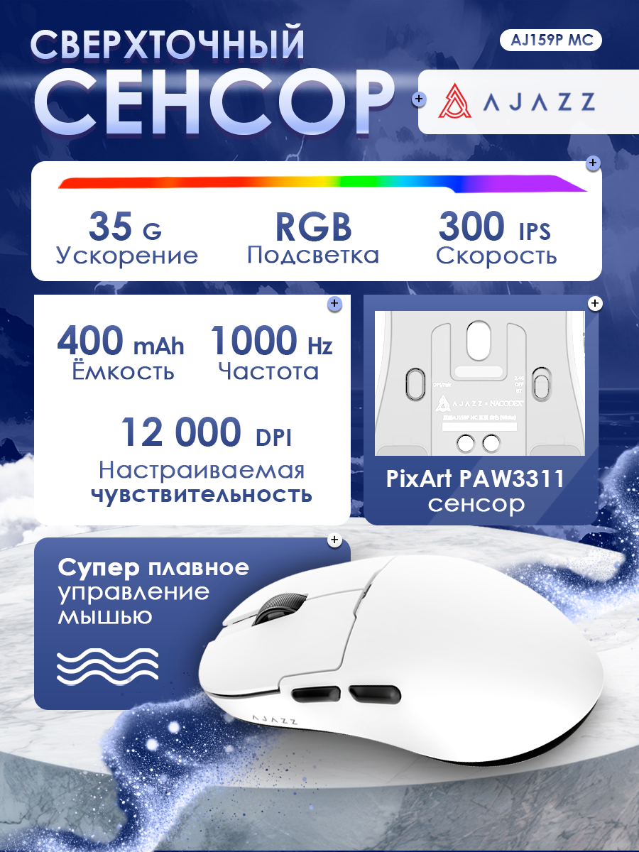 Купить Игровая беспроводная / проводная мышь AJAZZ AJ59P с док-станцией с доставкой по всей России.