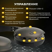 конструкция: полноразмерные, особенности: складная конструкция, регулировка громкости, отсоединяемый кабель, тип крепления: оголовье, Версия Bluetooth: 5.3, игровая гарнитура