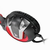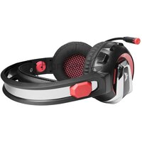 Гарнитура выполнена в черно-красном цвете и оснащена LED-подсветкой, что придает ей стильный и современный вид.