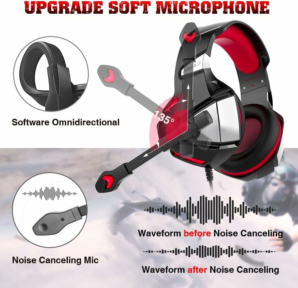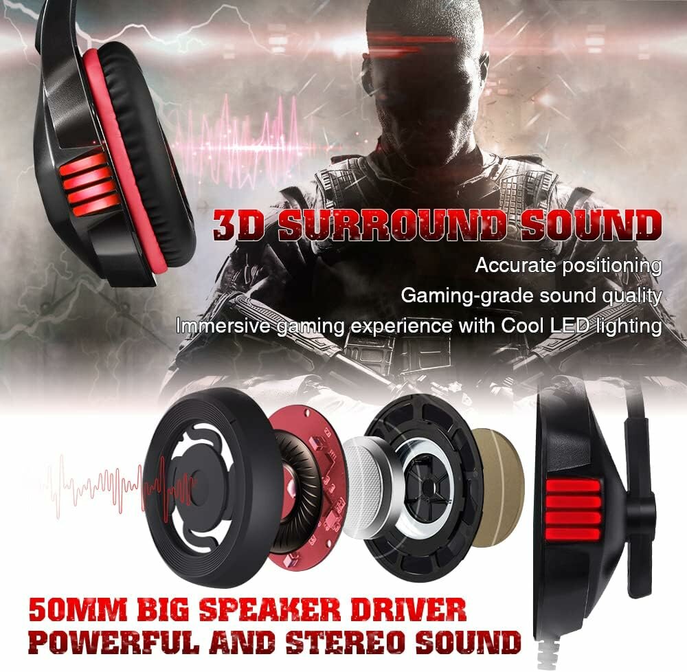 Игровая гарнитура для Xbox One, PS4, ПК, полноразмерные игровые наушники с шумоподавляющим микрофоном, светодиодной подсветкой, стереобасами, мягкими амбушюрами с эффектом памяти для смартфонов, ноутбуков и планшетов: сравнение цен, характеристики, фото, актуальное наличие и цены.