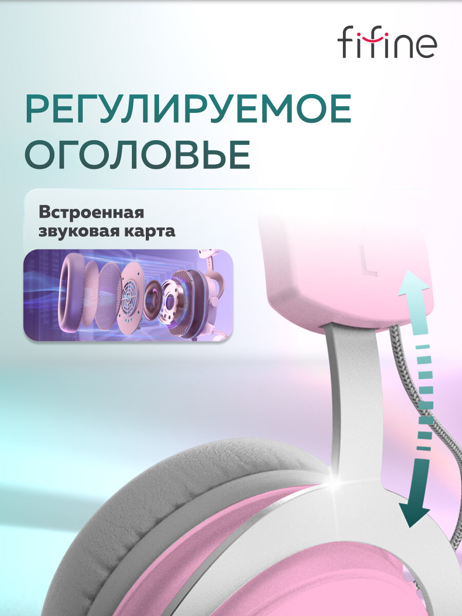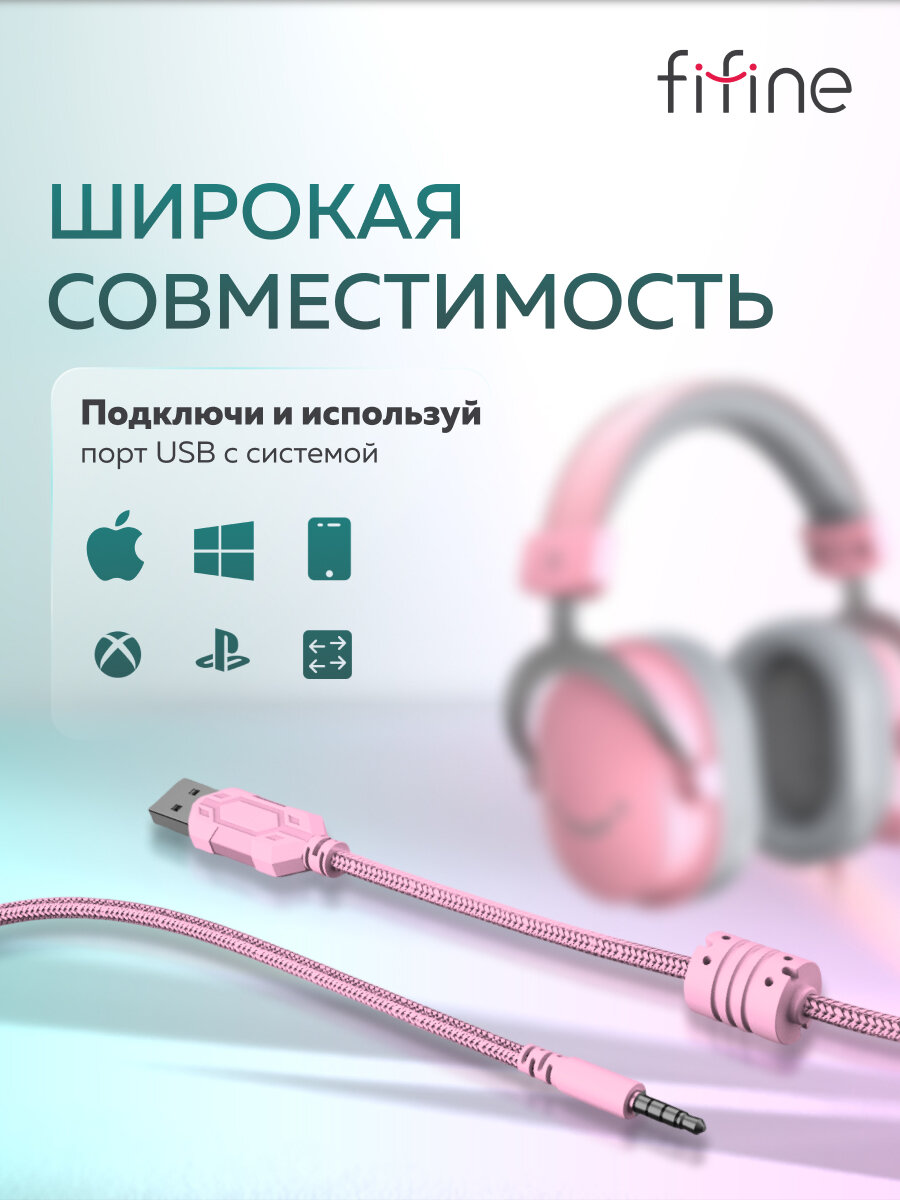 Купить Игровая гарнитура Fifine «H9 Gaming Headsets», полноразмерные, объемный звук, розовый с доставкой по всей России.