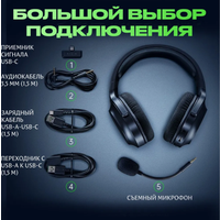 | Комплектация | Наушники Razer Barracuda X, USB-C приемник, Кабель USB-C на USB-A, Аудиокабель 3.5 мм, Документация |