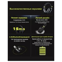Поддерживаетвает двойной режим подключения Bluetooth 5.3 и беспроводной 2.4G; оснащен микрофоном с шумоподавлением ENC; ориентирован на игровой опыт с низкой задержкой и также подходит для аудио- и видеосценарных ситуаций и т. д.