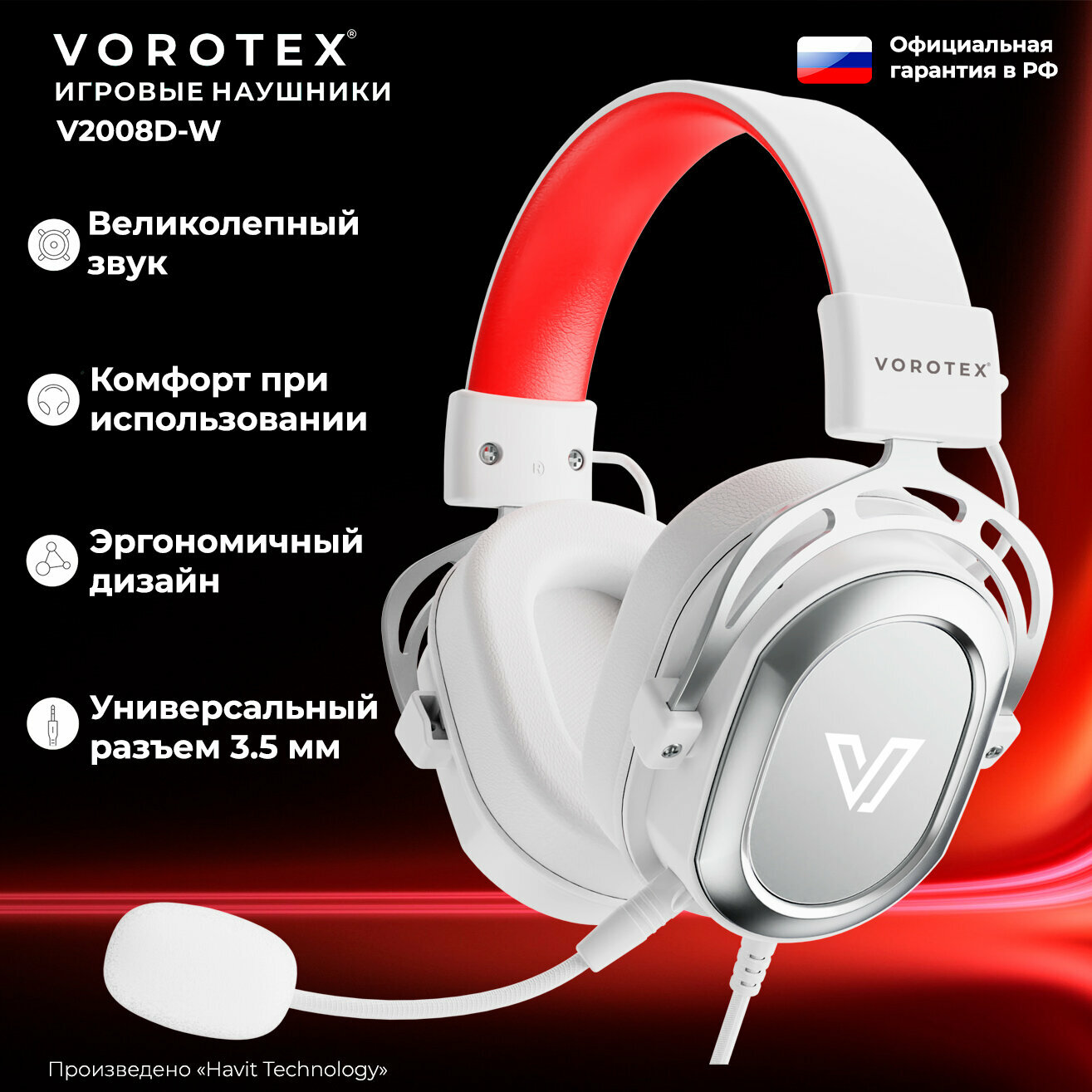 Купить Игровая гарнитура VOROTEX V2008D-W, 3,5мм, с микрофоном, накладные, белый с доставкой по всей России.
