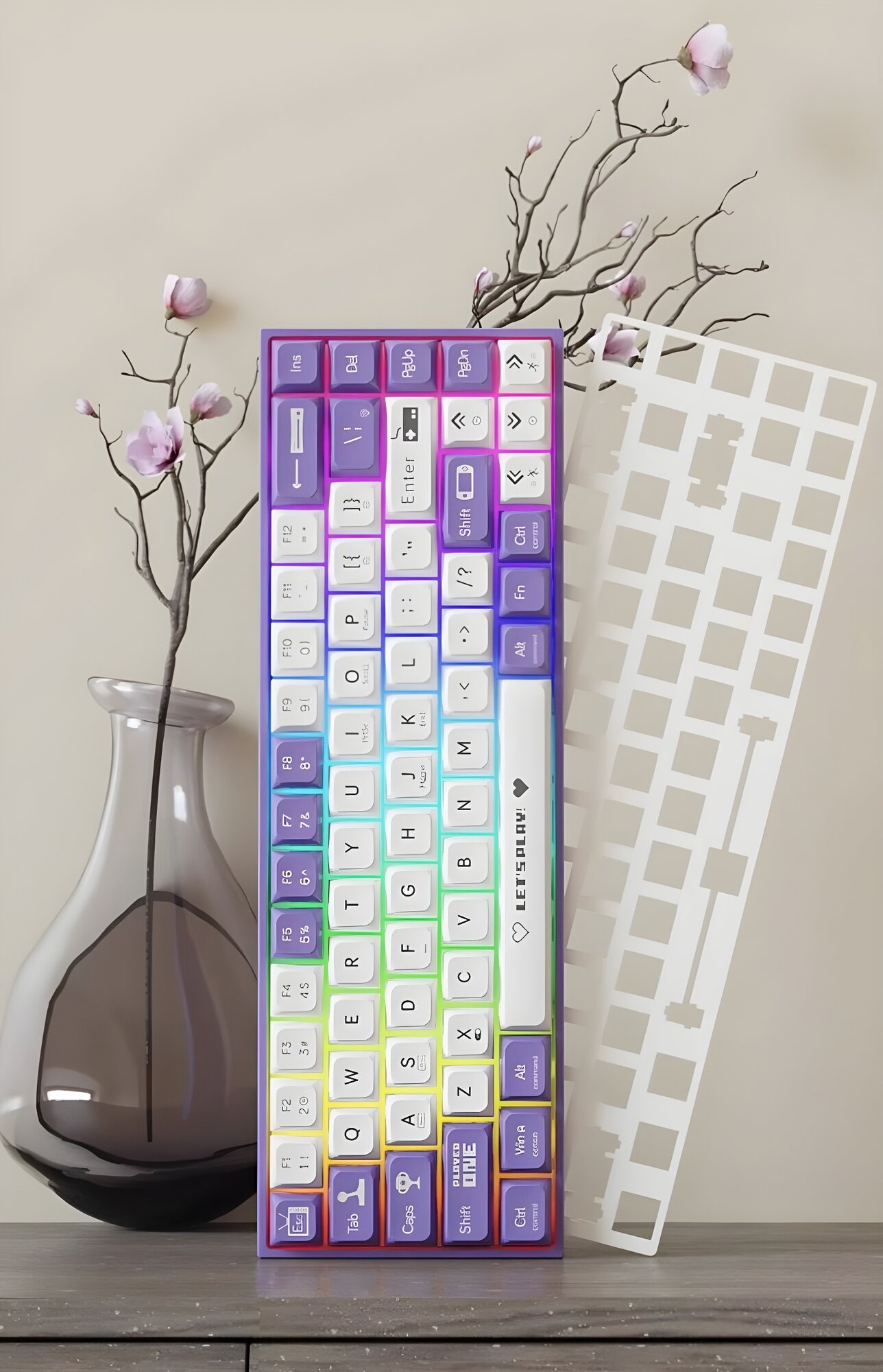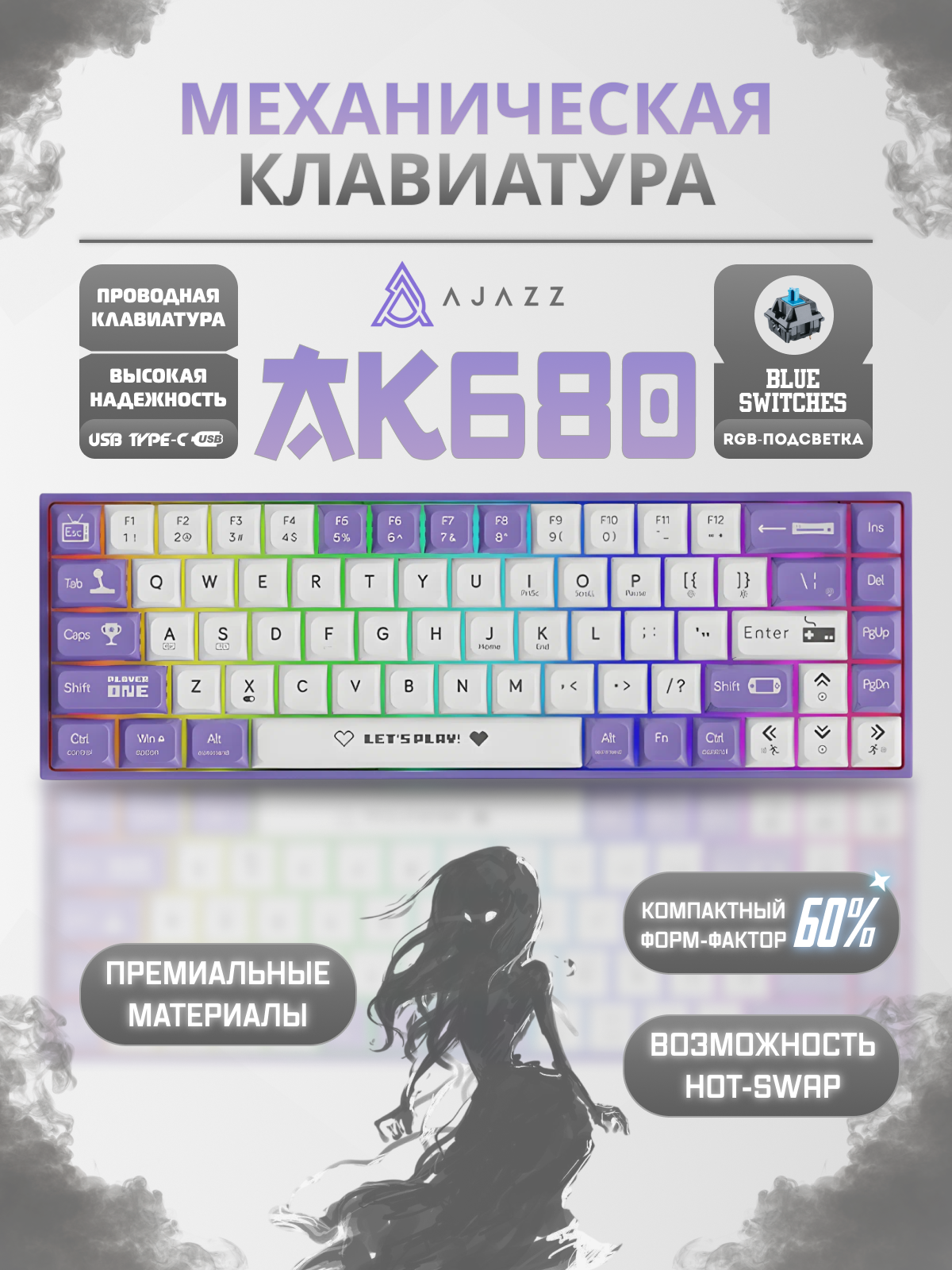 Игровая клавиатура Ajazz AK680, механическая, RGB-подсветка, Blue Switch, 68 клавиш, Пурпурно-белый: сравнение цен, характеристики, фото, актуальное наличие и цены.