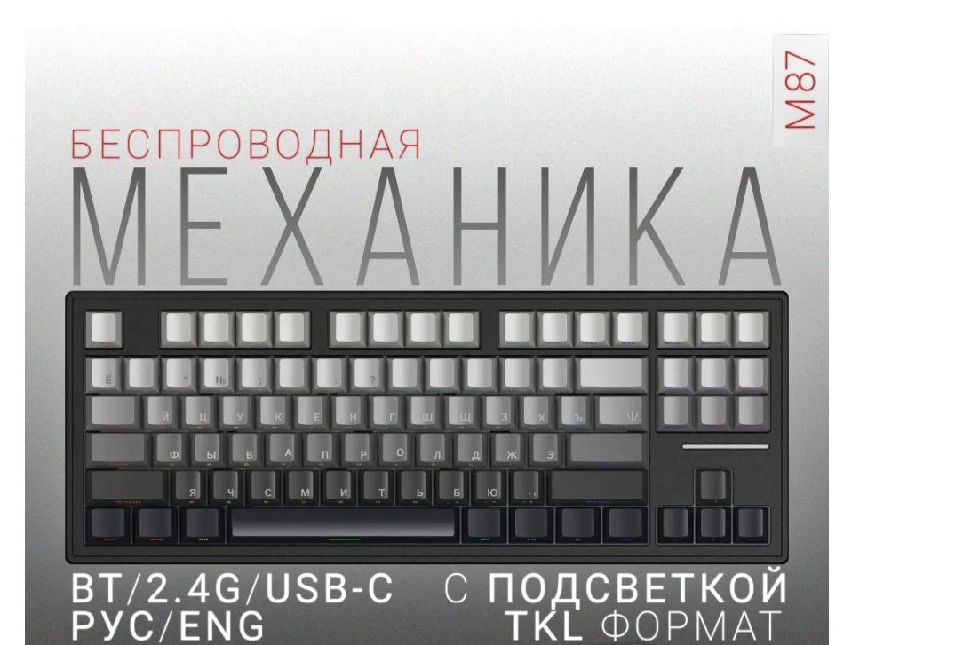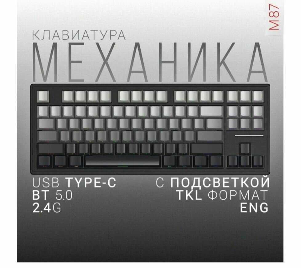 Игровая клавиатура ATTACK SHARK M87 беспроводная Механическая клавиатура TKL 80% Gasket Mount с линейным переключателем, Английская раскладка, Черный градиент: сравнение цен, характеристики, фото, актуальное наличие и цены.
