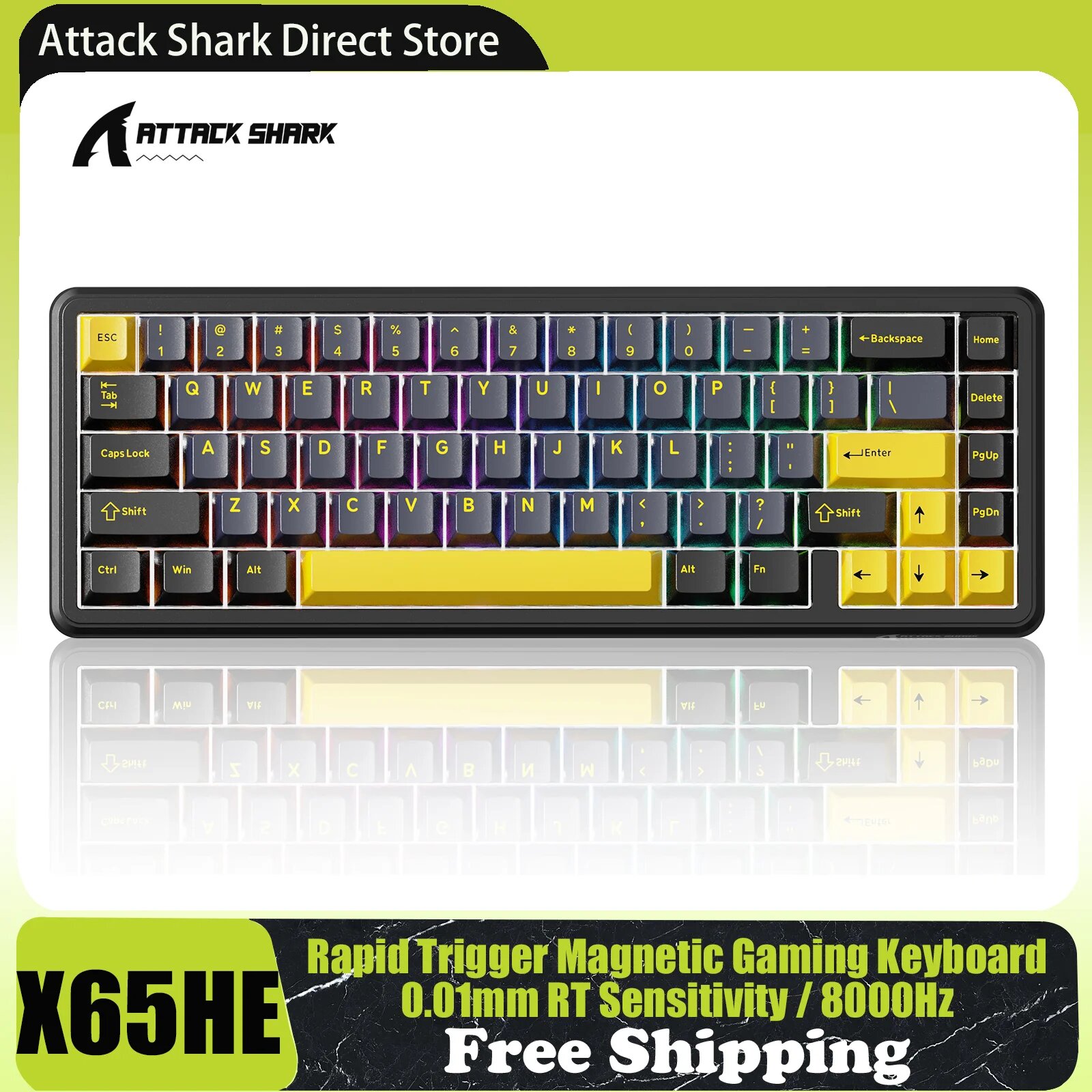 ATTACK SHARK X65 HE Проводная магнитная игровая клавиатура с быстрым триггером, точность 0,01 мм RT, 8000 Гц, регулируемый привод, кран с защелкой, White, Magnetic Switch