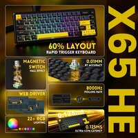 ATTACK SHARK X65 HE Проводная магнитная игровая клавиатура с быстрым триггером, точность 0,01 мм RT, 8000 Гц, регулируемый привод, кран с защелкой, White, Magnetic Switch: сравнение цен, характеристики, фото, актуальное наличие и цены.