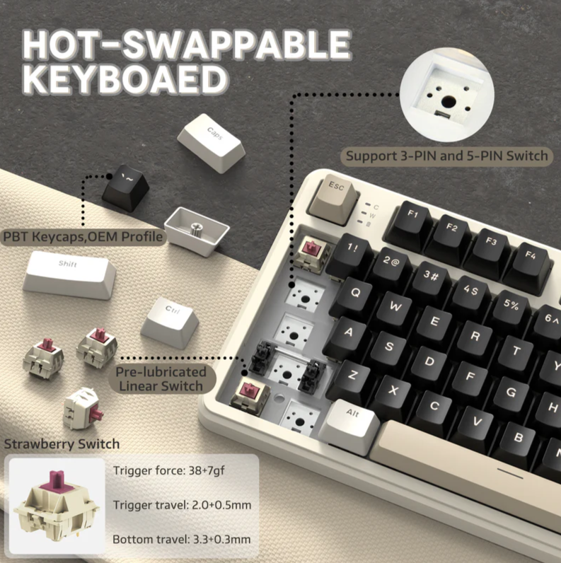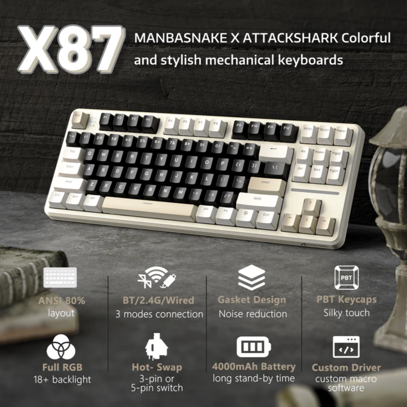 Игровая клавиатура ATTACK SHARK X87 Механическая, Русская раскладка, Бежевый/Черный: сравнение цен, характеристики, фото, актуальное наличие и цены.