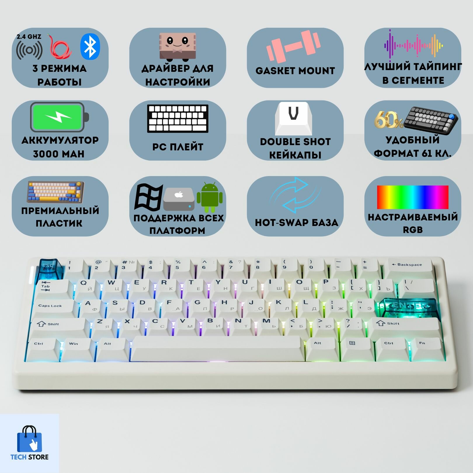 Игровая клавиатура Cidoo qk 61v2, механические переключатели Pearl White, подсветка RGB: сравнение цен, характеристики, фото, актуальное наличие и цены.