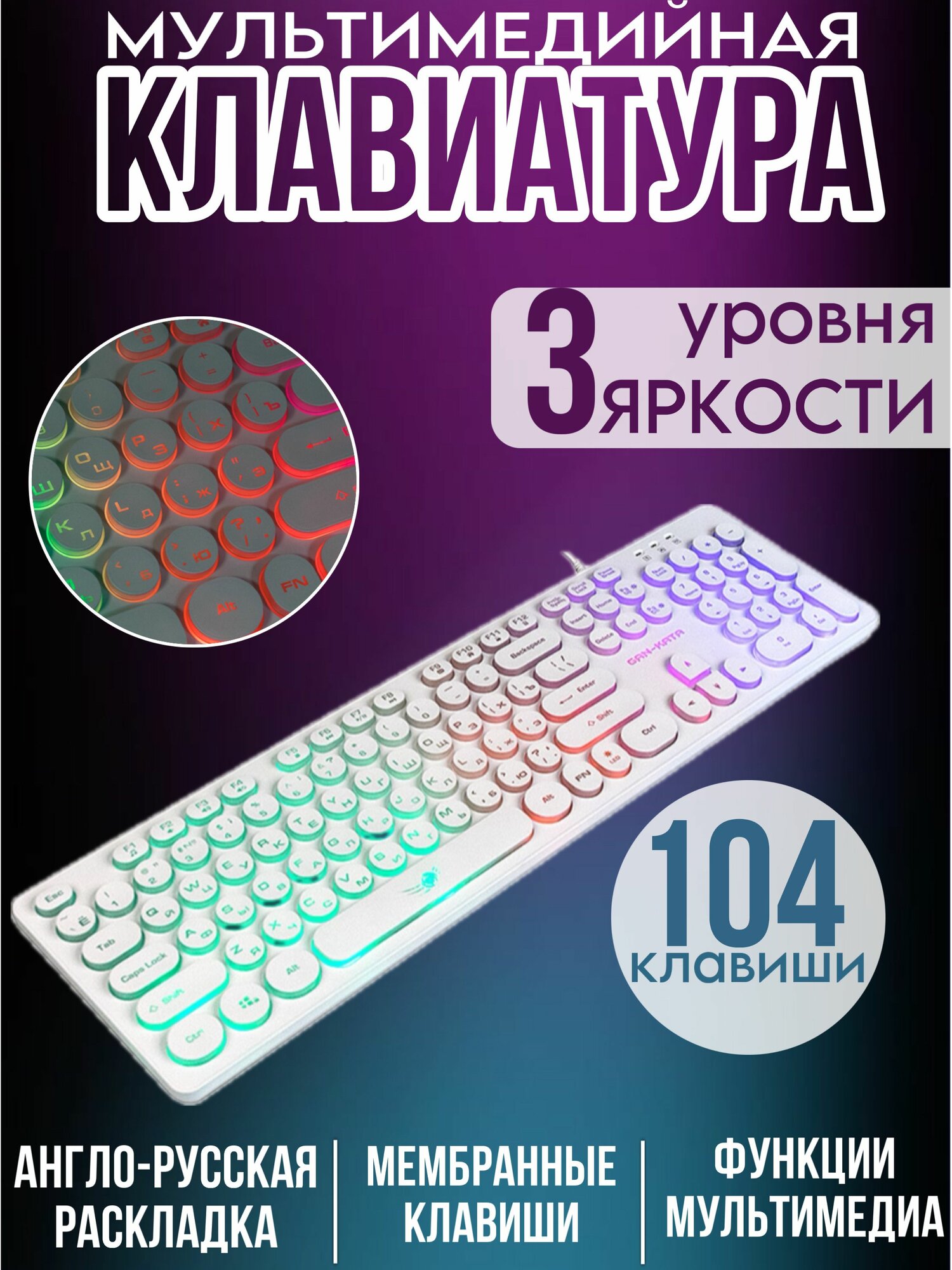 Клавиатура механическая русская Wolf K84 игровая проводная для компьютера ноутбука Gaming/game keyboard usb светящаяся белая