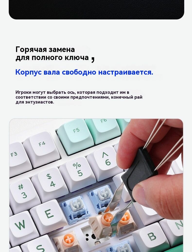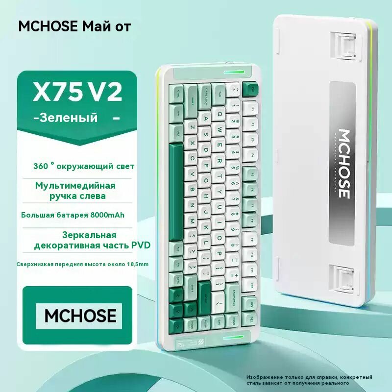 Игровая клавиатура MCHOSE X75, беспроводная, английский язык, Свитчи Icy Creamsicle Switch от Kailh, синяя: сравнение цен, характеристики, фото, актуальное наличие и цены.