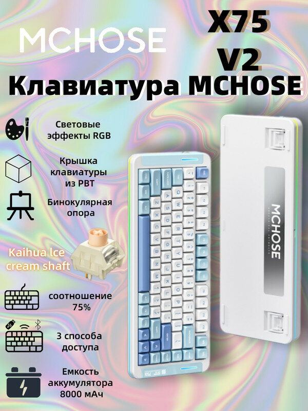 Игровая клавиатура MCHOSE X75 V2 , подсветка, три режима подключения, 75 клавиш, английская раскладка-11: сравнение цен, характеристики, фото, актуальное наличие и цены.