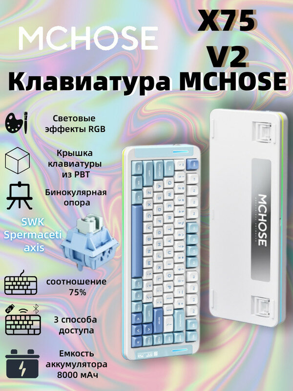 Игровая клавиатура MCHOSE X75 V2 , подсветка, три режима подключения, 75 клавиш, английская раскладка-9: сравнение цен, характеристики, фото, актуальное наличие и цены.