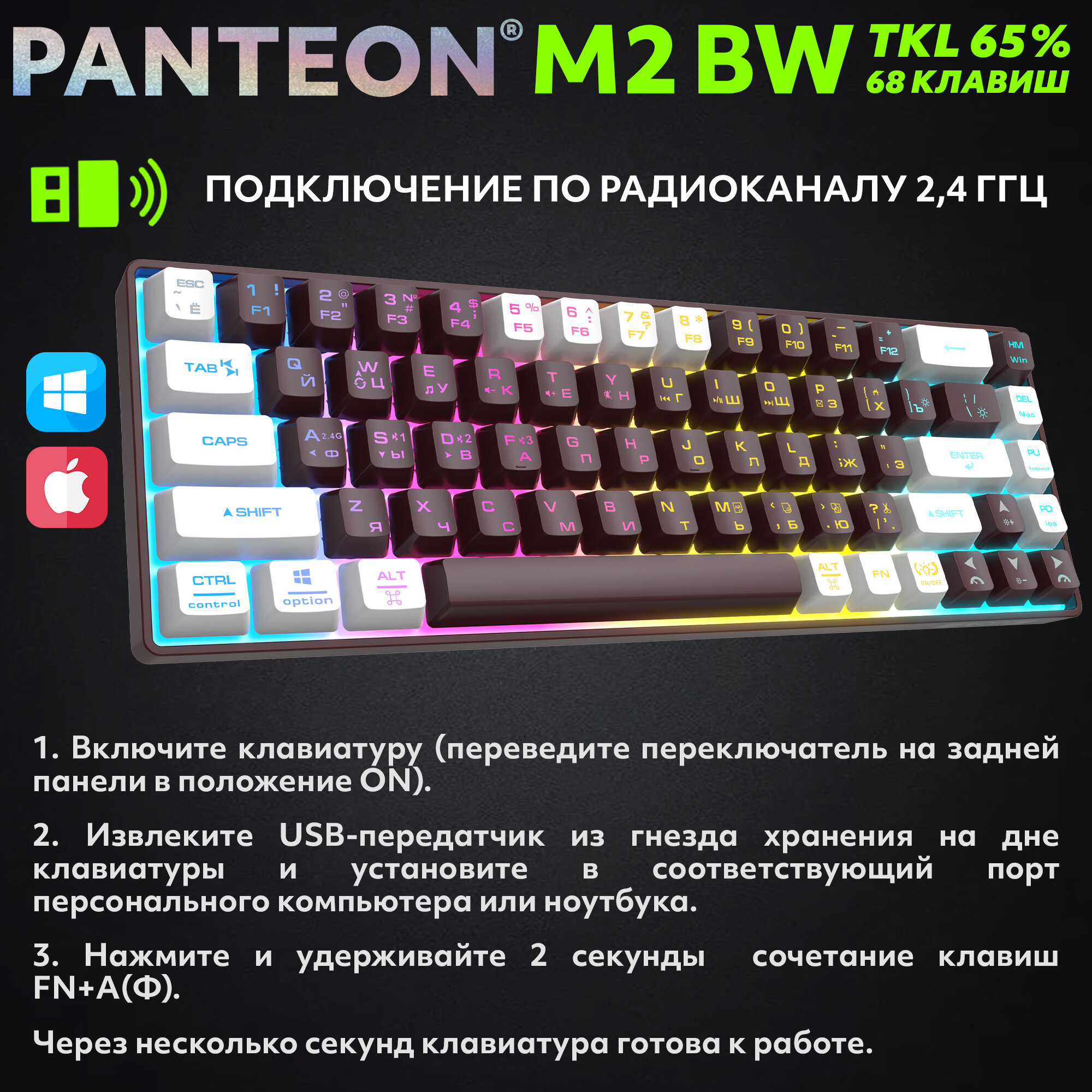 Купить Игровая клавиатура PANTEON M2 BW Ripe cherry-White (160), беспроводная, подсветка RGB, 68 клавиш с доставкой по всей России.