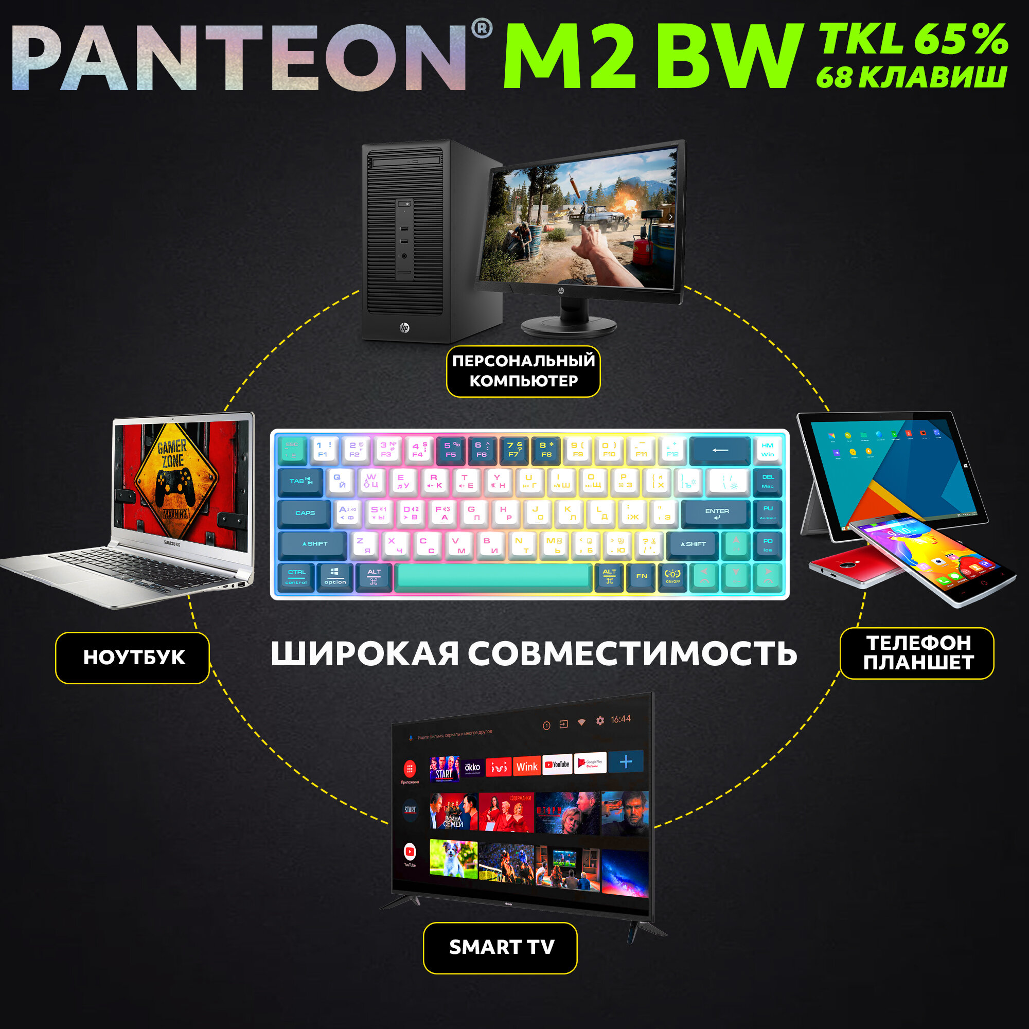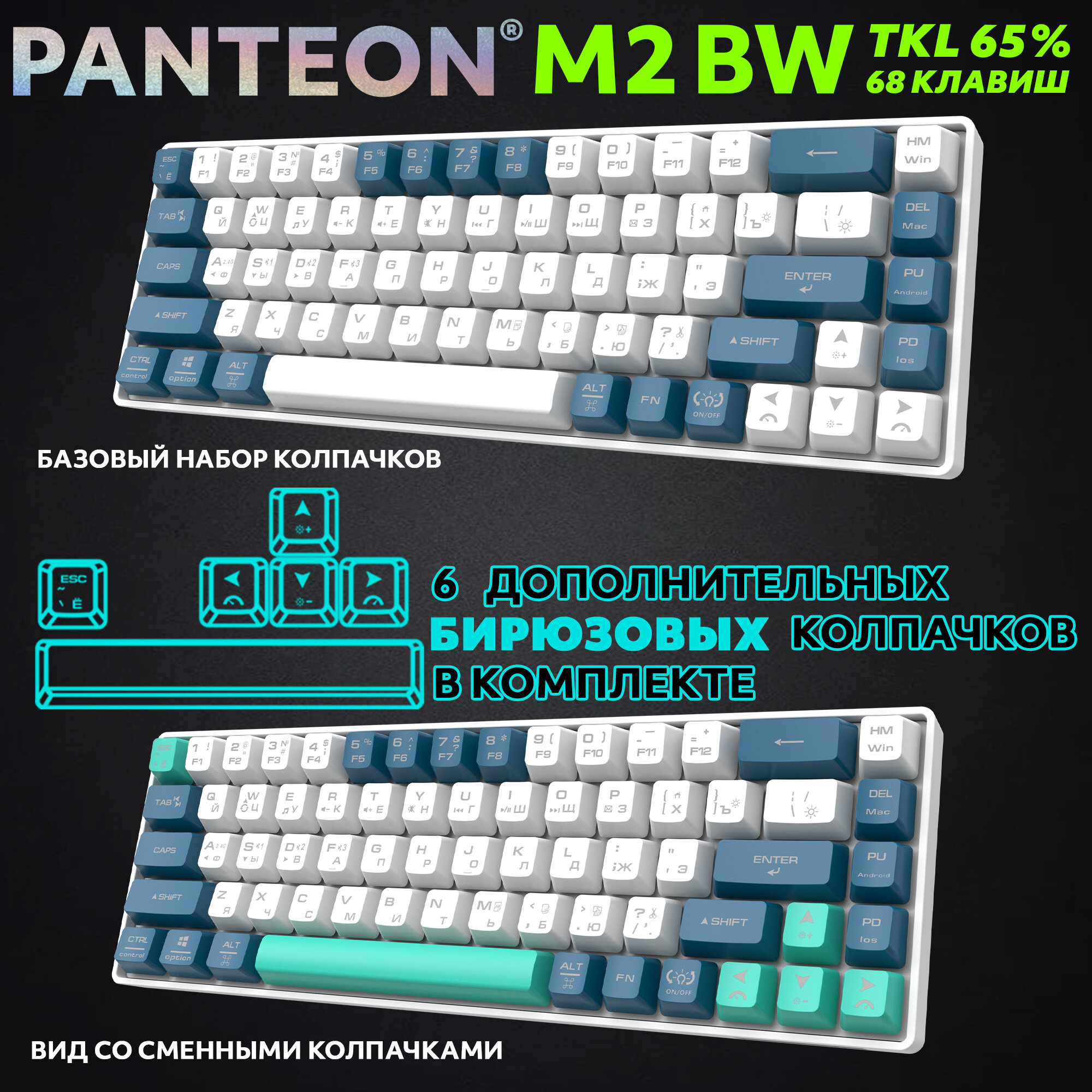 Игровая клавиатура PANTEON M2 BW White-Blue (154), TKL, RGB подсветкой, беспроводная: сравнение цен, характеристики, фото, актуальное наличие и цены.