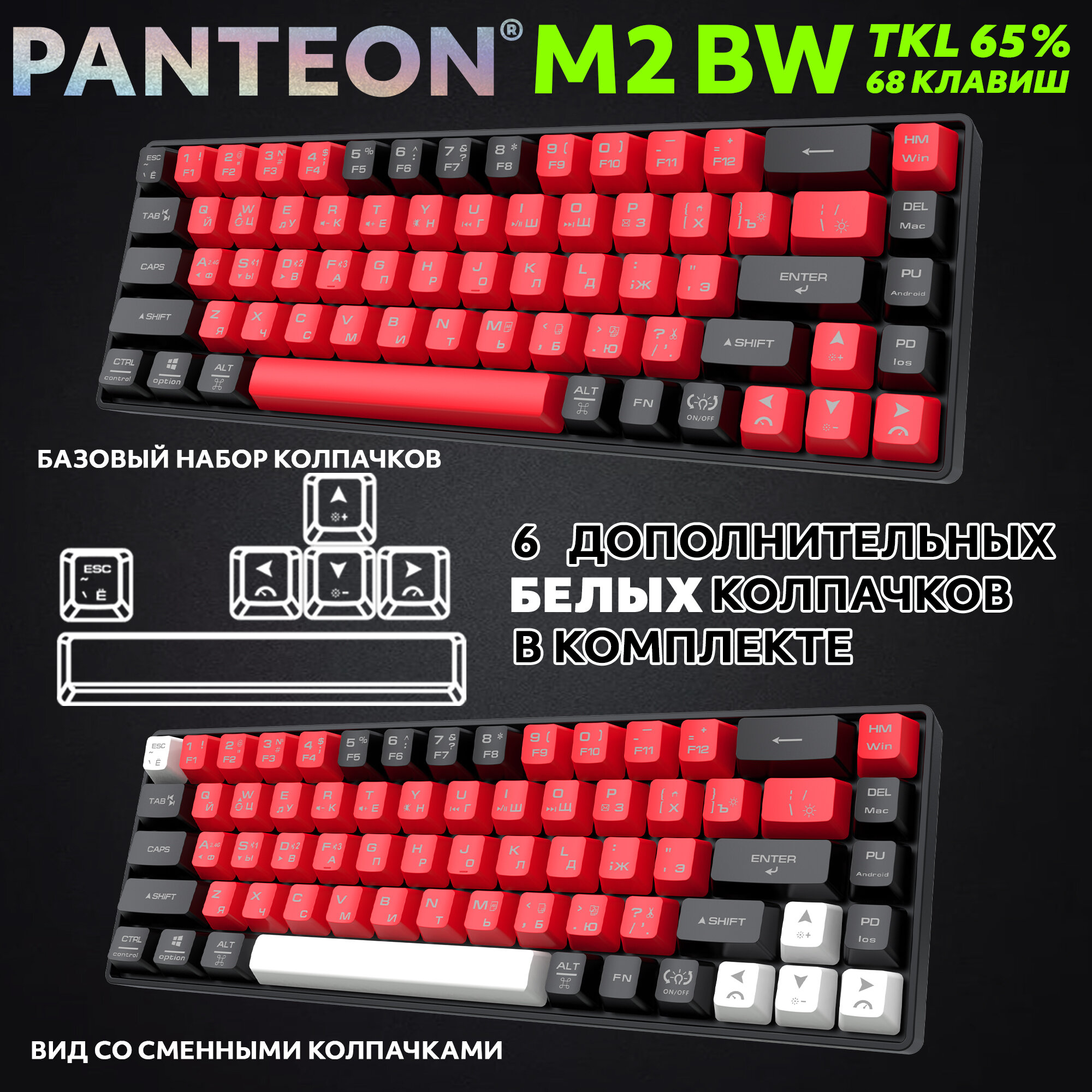 Игровая клавиатура PANTEON M2 «Red-Black» (155), беспроводная, 68 клавиш: сравнение цен, характеристики, фото, актуальное наличие и цены.