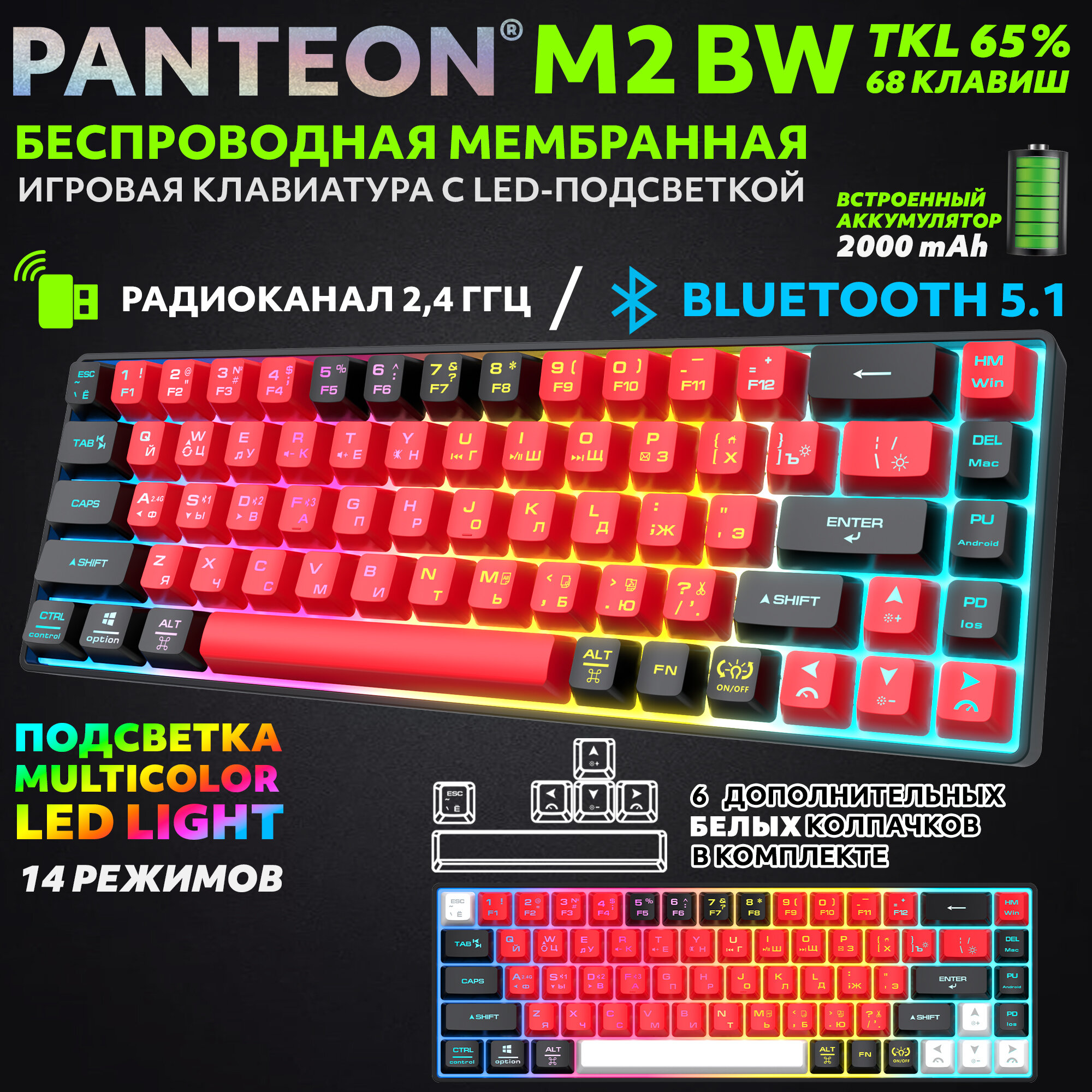 Игровая клавиатура PANTEON "M2", мембранная, беспроводная, LED-подсветка MULTICOLOR (152)