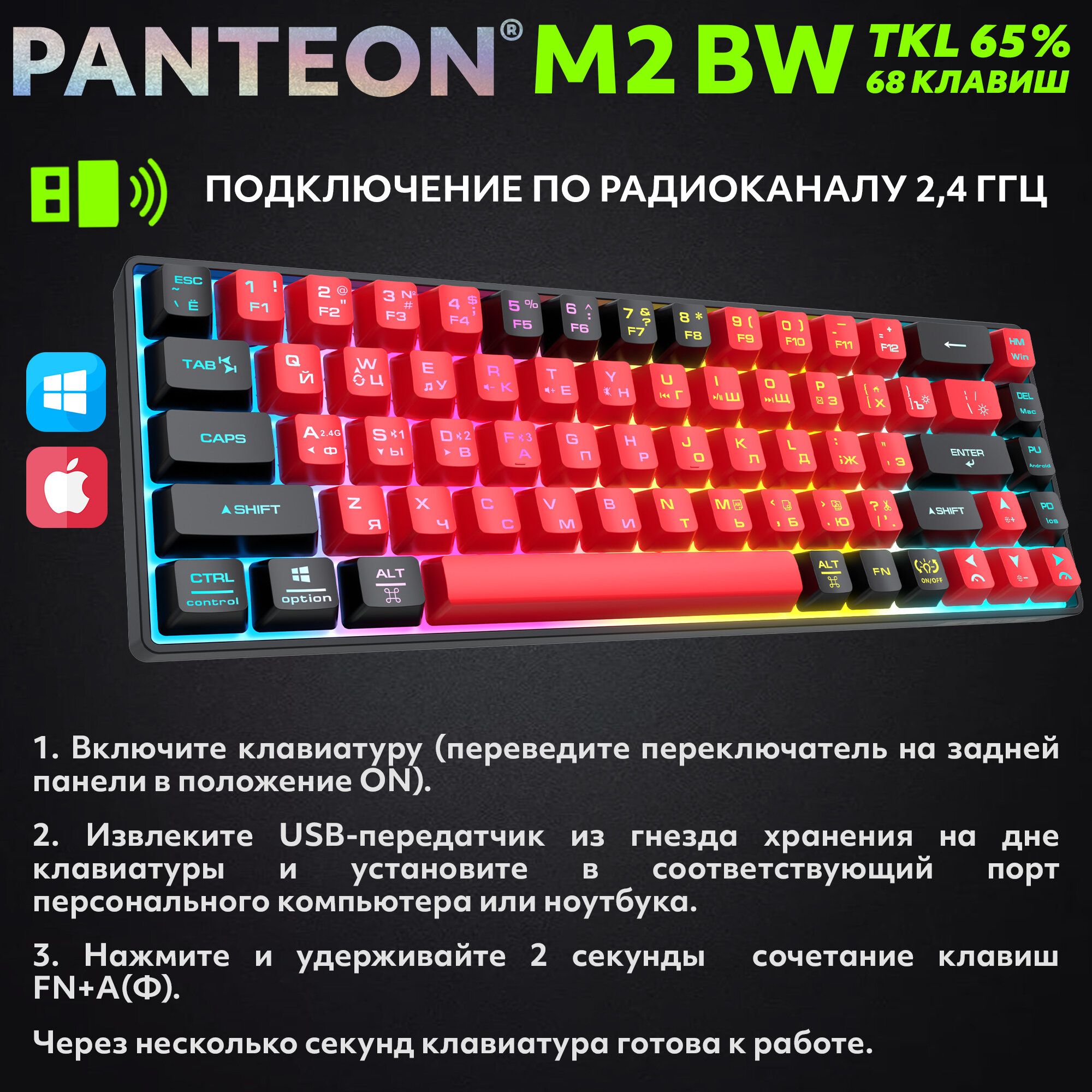 Купить Игровая клавиатура PANTEON M2 «Red-Black» (155), беспроводная, 68 клавиш с доставкой по всей России.
