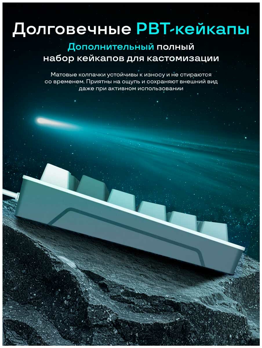 • Дополнительный набор кейкапов Рассчитан для персонализации и кастомизации девайса.