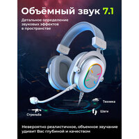 Одной из особенностей данной модели является RGB-подсветка, которая добавляет стильный штрих к вашему образу. Формат звуковой схемы 7.1 Virtual позволяет услышать каждую деталь, помогая ориентироваться в окружающей среде.