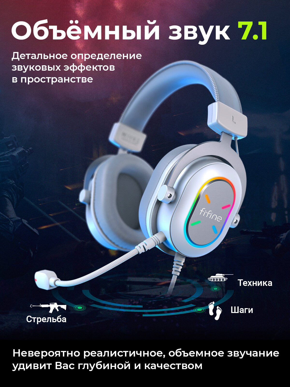 Проводные наушники FIFINE H6X (2023, 7.1 Virtual) USB Type-A представляют собой уникальное сочетание комфорта, функциональности и стильного дизайна.