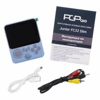 Игровая приставка PGP AIO Junior FC32a Slim Цвет-Голубой. Диагональ экрана, дюйм-3.2. Гарантийный срок, мес.-12. Количество встроенных игр-500. Слот для карты памяти-Да. Тип карты памяти-microSD.