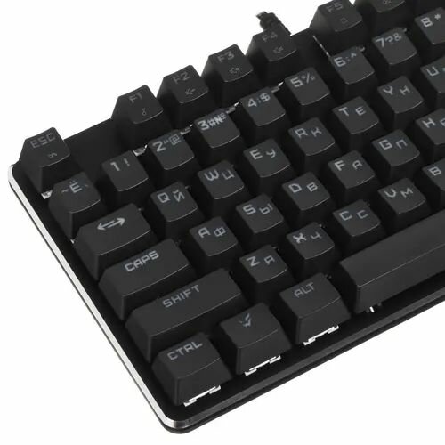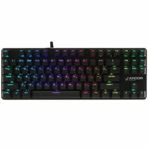 Клавиатура проводная ARDOR GAMING Blade PRO подключается к необходимому устройству через 1.8-метровый USB-кабель. Выполненный из металла корпус устойчив к агрессивным внешним воздействиям и появлению повреждений. Кейкапы из пластика высокой плотности не боятся преждевременного истирания.Клавиатура проводная ARDOR GAMING Blade PRO оборудована линейными переключателями Kailh Red. Они мгновенно отзываются на касания пользователя и позволяют своевременно отреагировать на угрозу в игровых баталиях. RGB-подсветка не допустит погрешностей ввода при слабом освещении. Компактных размеров аксессуара удалось достичь за счет отсутствия цифрового блока.