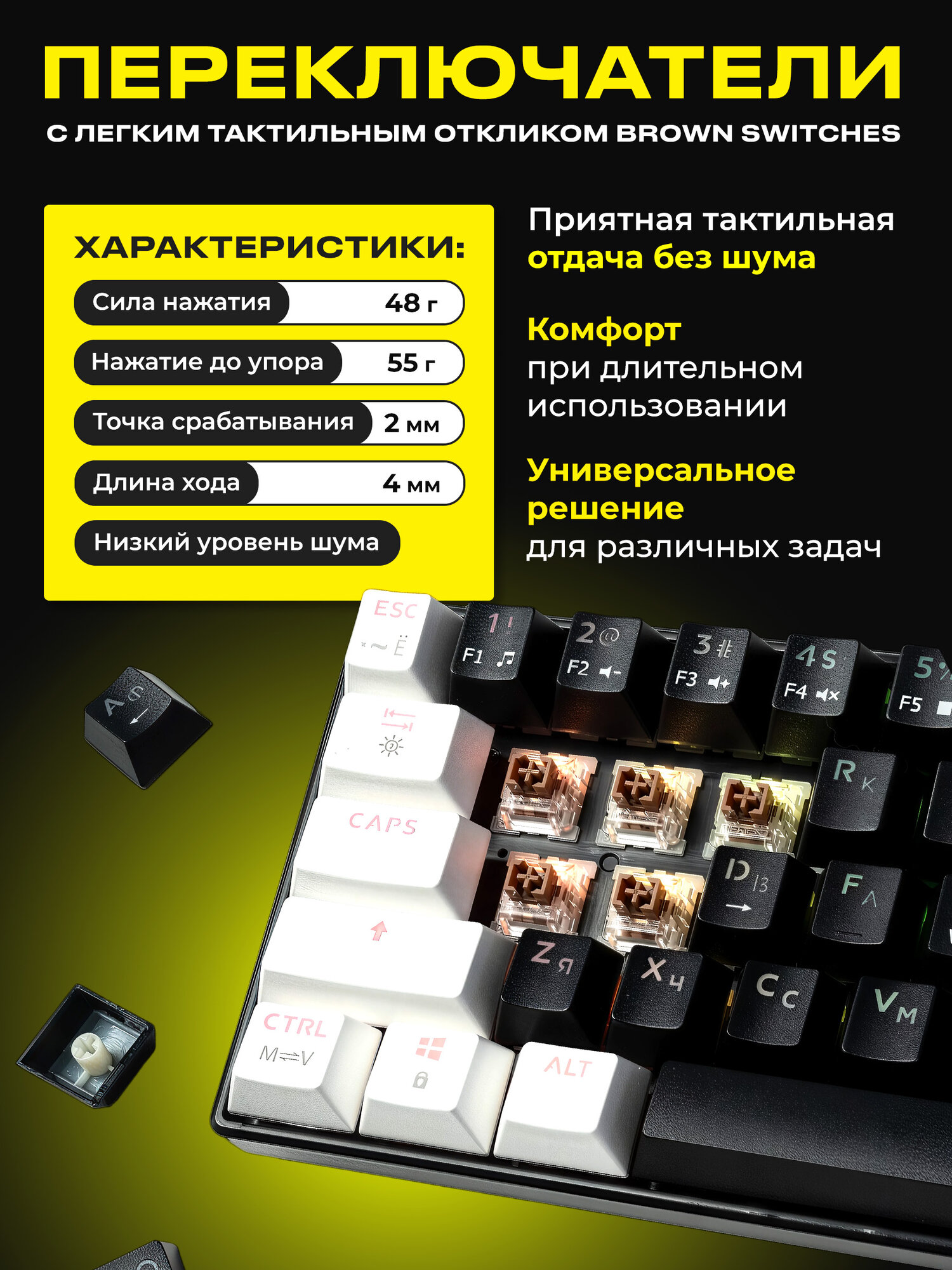 | Комплектация | Клавиатура, кабель USB Type-C, пуллер, запасные переключатели - 2 шт., инструкция |