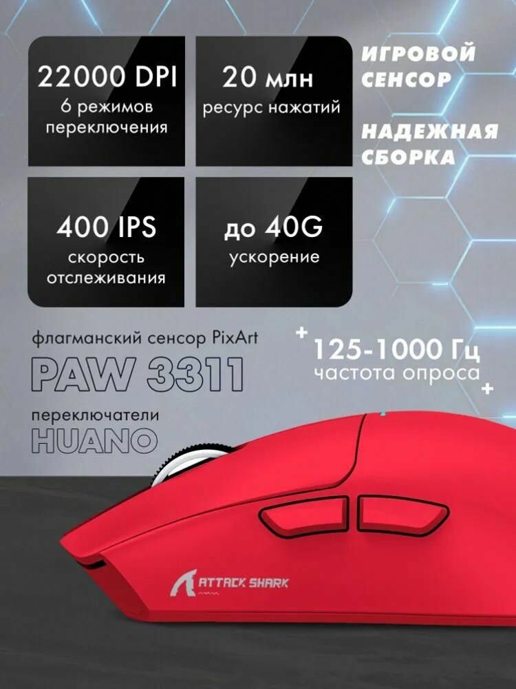 Игровая мышь Attack Shark X11, беспроводная, RGB, с зарядкой, эргономичная, красная: сравнение цен, характеристики, фото, актуальное наличие и цены.