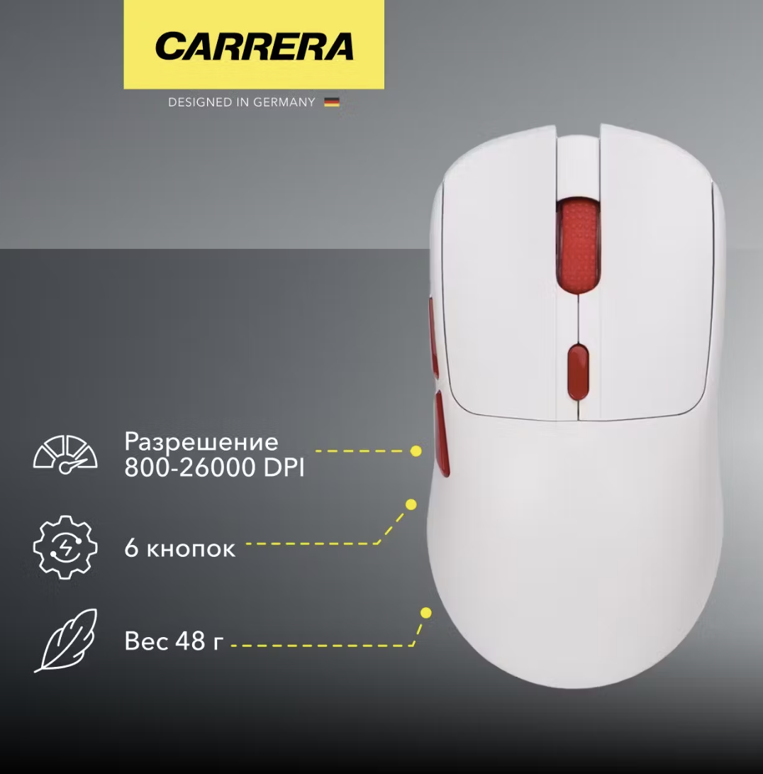 Игровая мышь Carrera Nyx White №205, оптический светодиодный сенсор, разрешение 26000dpi, белый-красный: сравнение цен, характеристики, фото, актуальное наличие и цены.