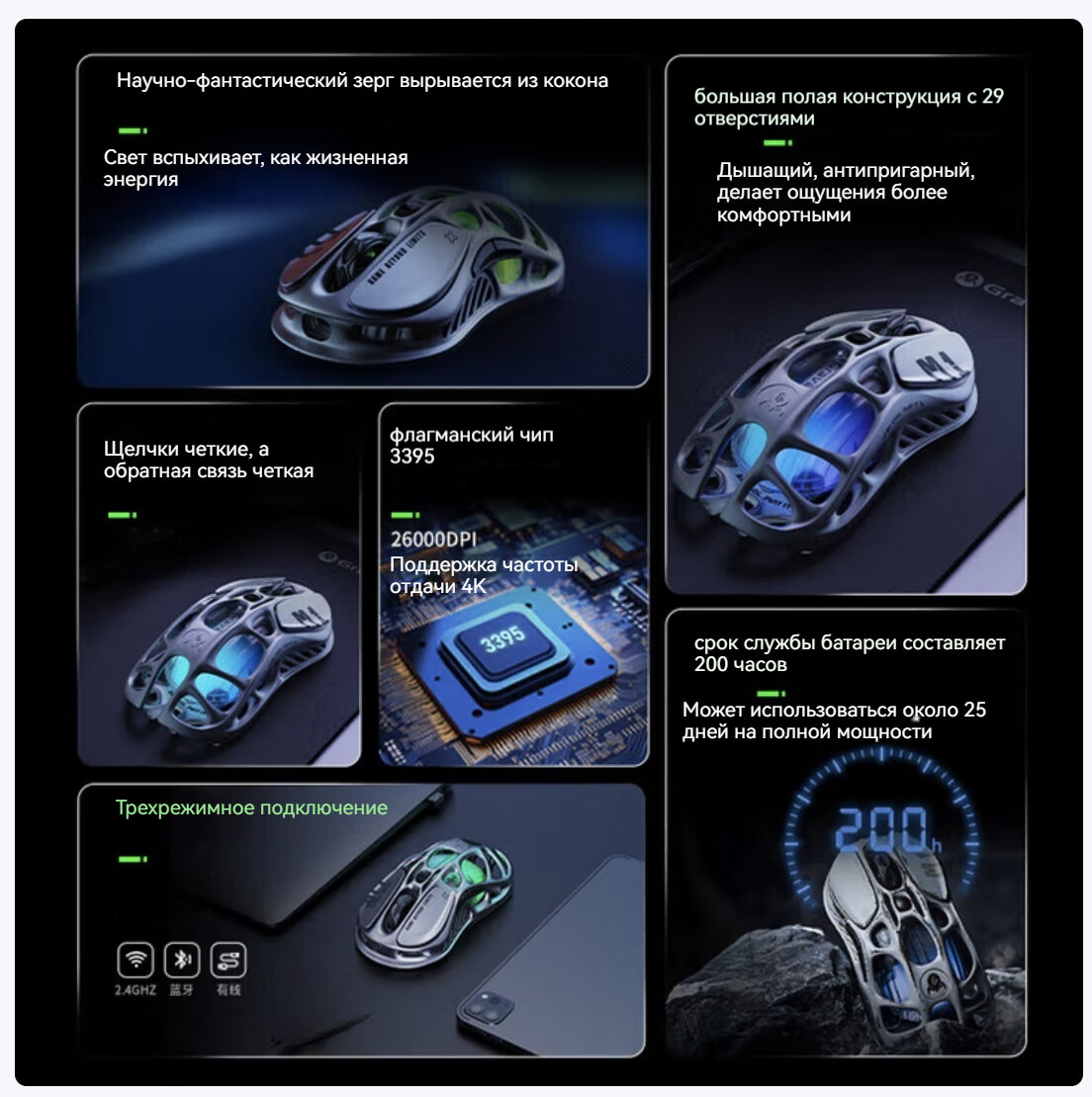 Игровая мышь GravaStar Chrysalis, Wireless Wired Bluetooth Tri-Mode, 3395, Легкий вес магниевого сплава: сравнение цен, характеристики, фото, актуальное наличие и цены.