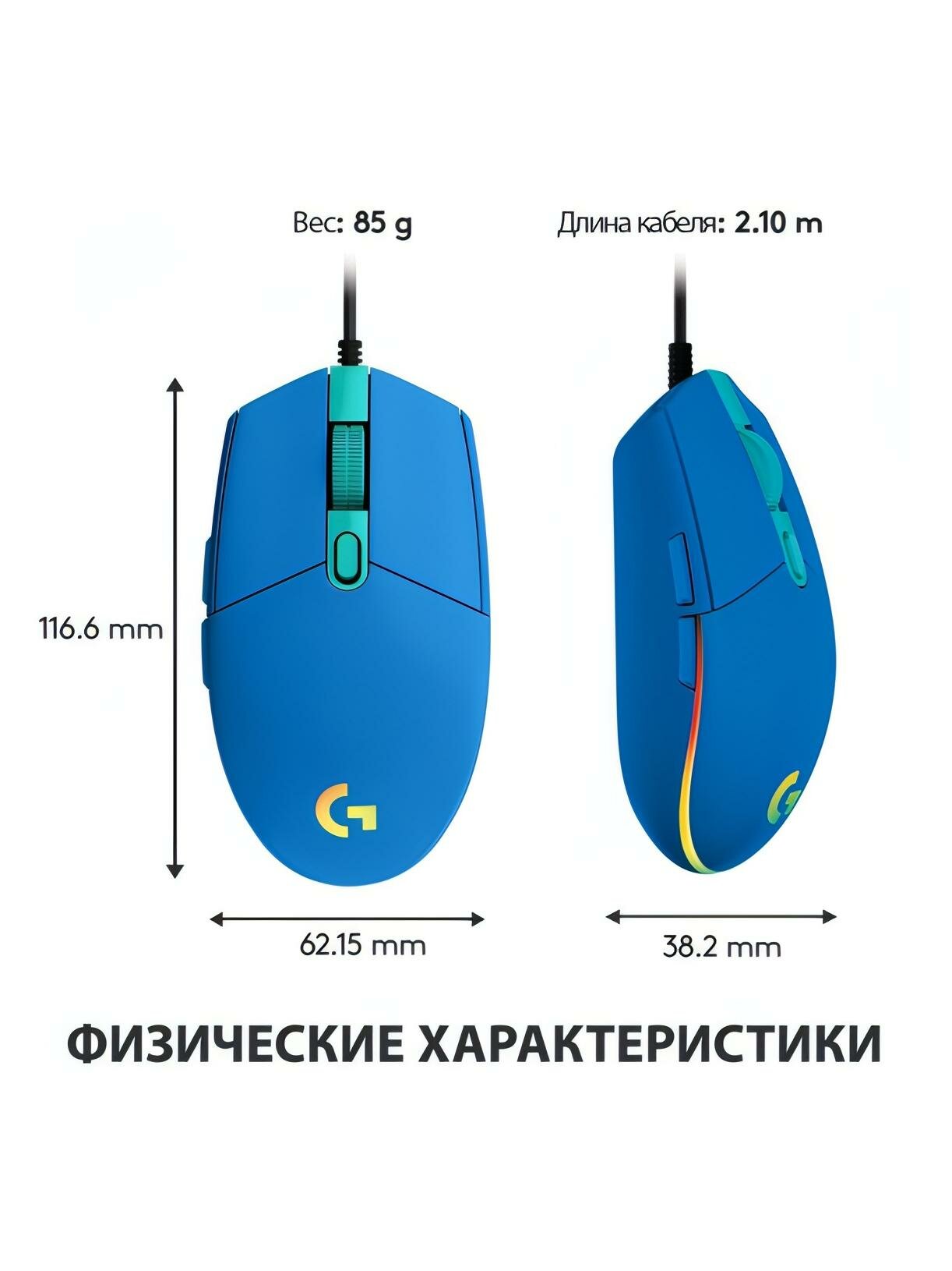 Мышь Logitech G102 Lightsync Blue - это проводная игровая мышь, которая станет незаменимым помощником в ваших игровых сражениях.