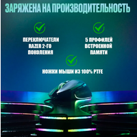 | Время работы | По Bluetooth - 535 ч.; по радиоканалу 2,4 ГГц по технологии Razer HyperSpeed - 285 ч. |