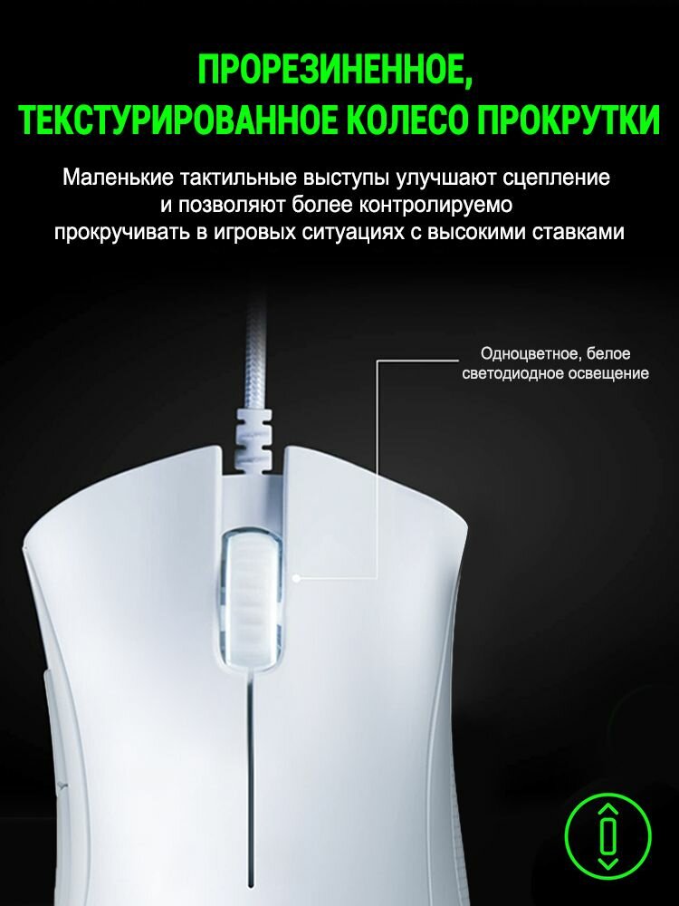 | Дополнительная информация | кабель Razer Speedflex, ножки мыши из 100% фторопласта PTFE (толщиной 0,8 мм), поддерживается Razer Synapse 3, Razer Chroma™ с настройкой 16,8 миллиона оттенков цветов, регулировка чувствительности (уровни по умолчанию: 400/800/1600/2400/3200 DPI), гибридное облачное хранилище и встроенная память (до 4 + 1 профиля), совместимость с Xbox One для базового ввода |