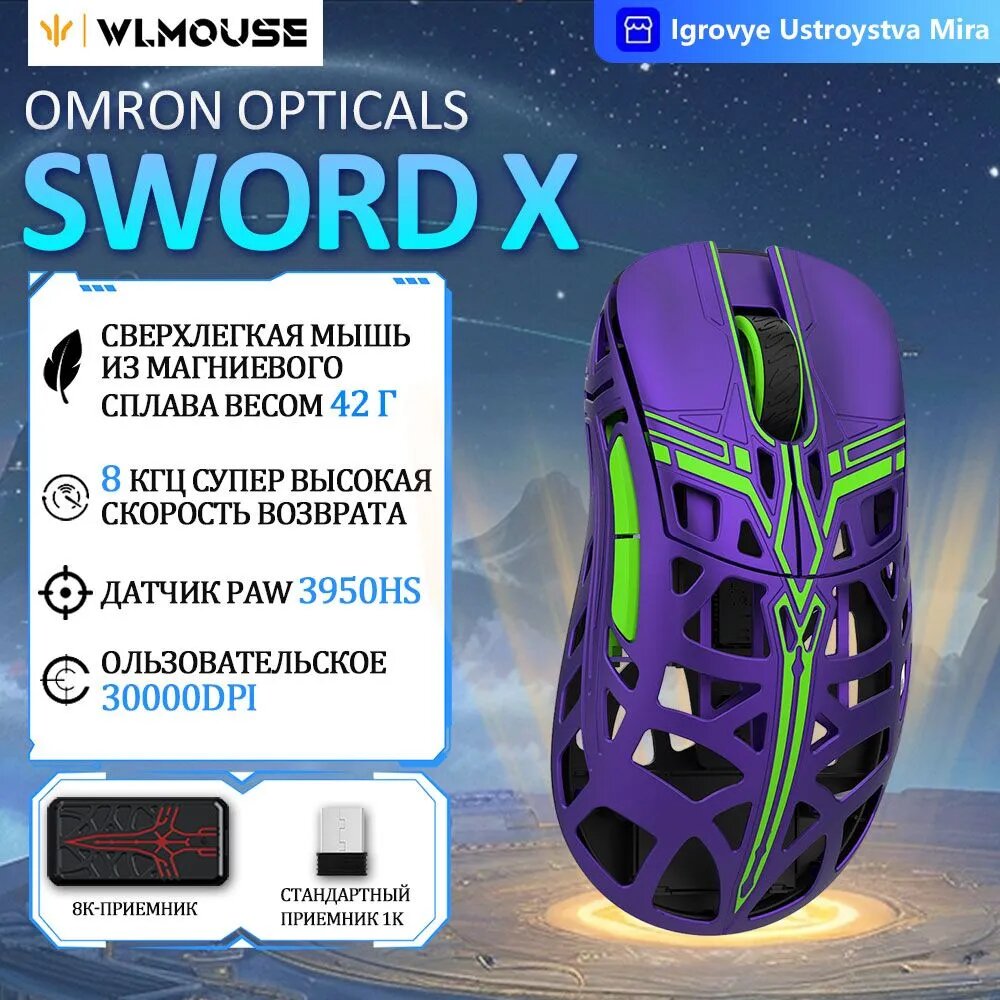 Wlmouse Игровая мышь беспроводная Sword X Беспроводная связь 8K-OM Opticals, фиолетовый: сравнение цен, характеристики, фото, актуальное наличие и цены.