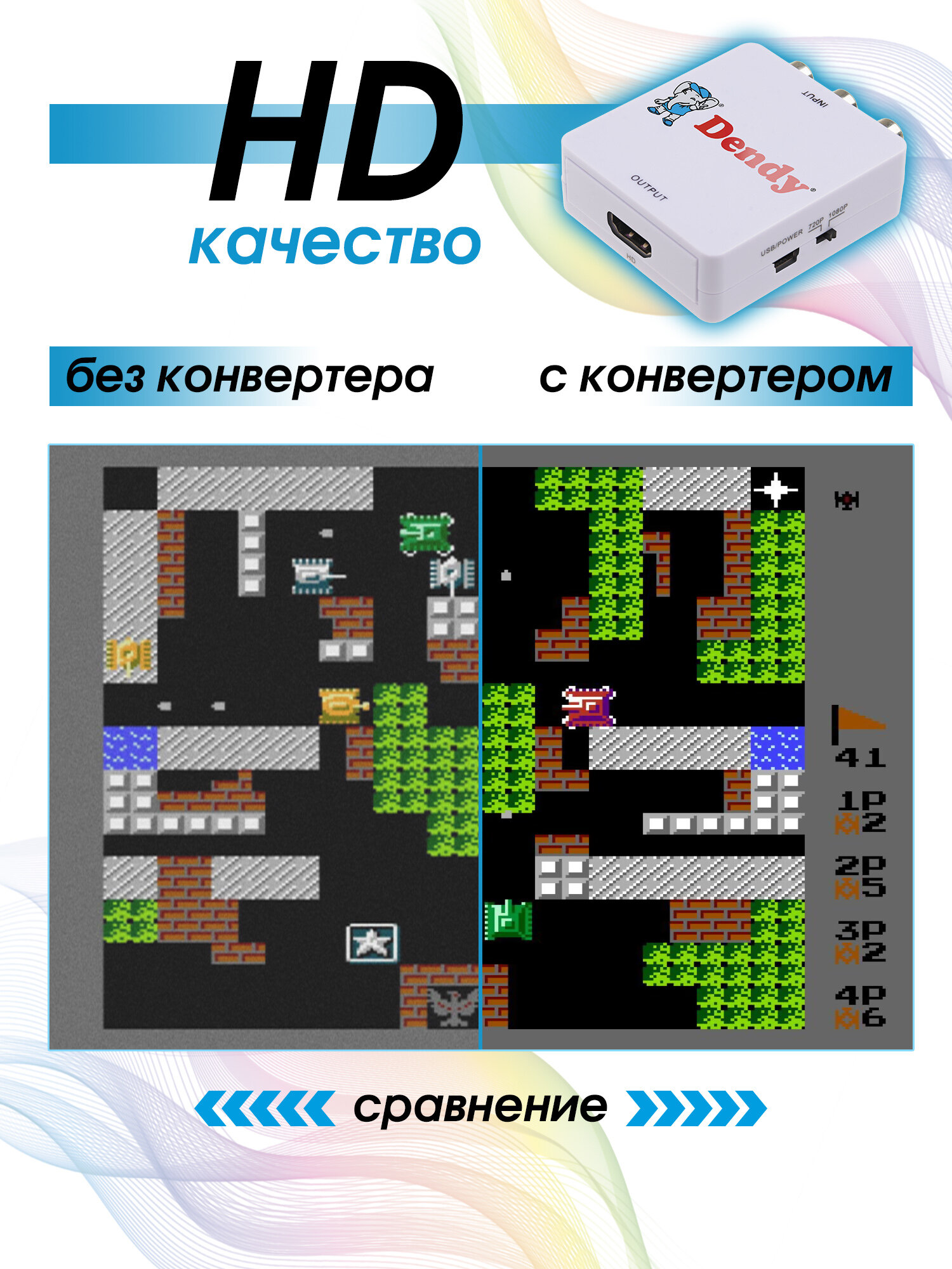 Данная версия приставки комплектуется HDMI конвертером, который позволяет подключать приставку к современным телевизорам, а также улучшает качество картинки