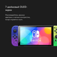 Nintendo Switch (OLED) - это новаторская домашняя игровая консоль, состоящая из трех частей. Первый - это собственный вычислительный блок консоли с 7-дюймовым дисплеем. Вторую часть можно считать док-станцией, в которую вставляется вычислительный блок. Благодаря разъему HDMI он передает на телевизор изображения в формате Full HD. Последняя часть - это усовершенствованные съемные драйверы Joy-Con.