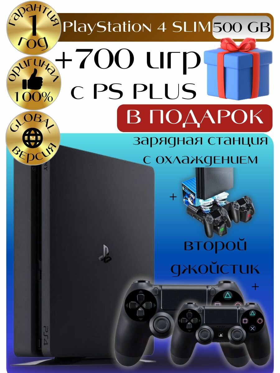 Купить Игровая приставка Playstation 4 Slim 500 GB, зарядка и 2й джойстик с доставкой по всей России.