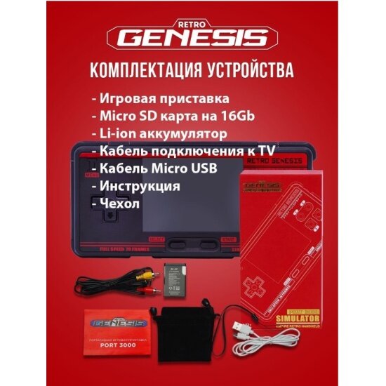 Retro Genesis Port 3000 (черно-красная, 10 эмуляторов, 4000+игр, 3.0 экран IPS, SD-карта, сохранения) – свежий взгляд на давно полюбившуюся консоль. Сегодня вы сможете приобрести эту приставку со встроенными техническими дополнениями и внушительной игротекой. Попробуйте виртуальный мир 2D пространства в обновленной версии.