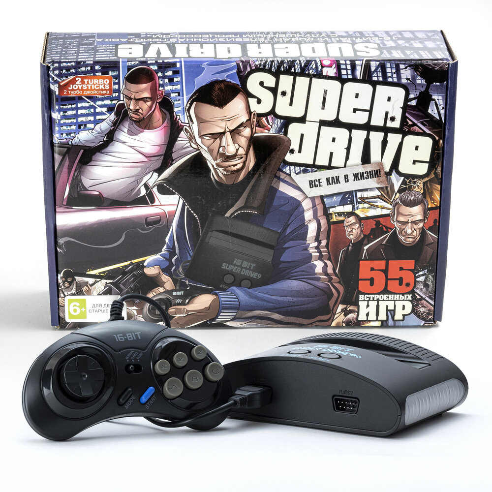 Sega Super Drive GTA V (140 игр) – это современная игровая приставка Sega черного цвета с 140 различными встроенными играми.