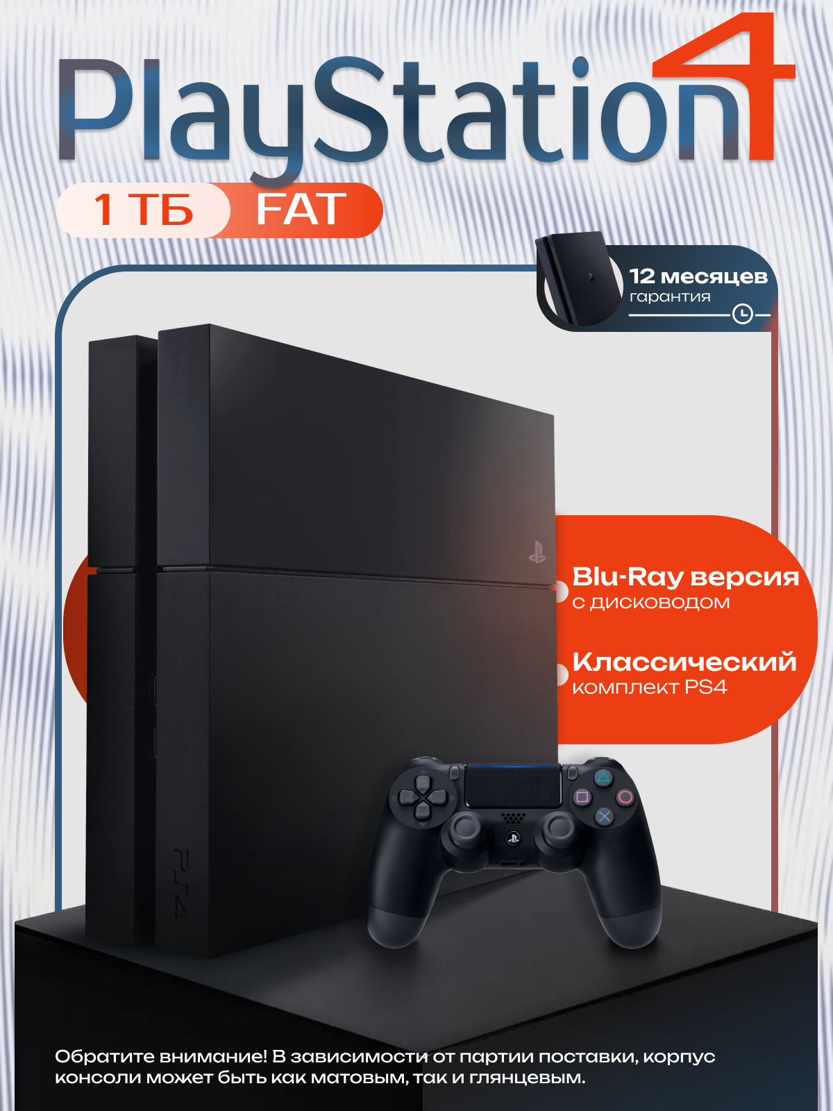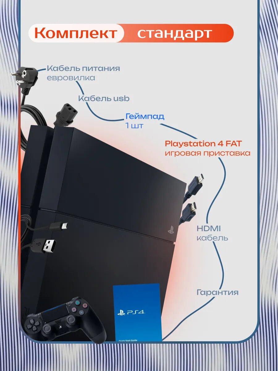Игровая приставка Sony PlayStation 4 FAT 1ТБ Комплект «Стандарт» — Классический комплект Ps4. Если хотите расширить возможности и получить больше впечатлений без дополнительных покупок и ожиданий, обратите внимание на другие варианты комплектации. Они доступны на странице товара. Внимание! Чтобы обеспечить сохранность при транспортировке, оригинальная упаковка заменена на более прочную транспортную коробку! PlayStation 4 Fat - это мощная игровая консоль, которая подарит вам незабываемые впечатления от любимых игр. С ее помощью вы сможете погрузиться в захватывающие миры, наслаждаясь реалистичной графикой и плавным геймплеем. Консоль оснащена процессором AMD Jaguar и графическим процессором AMD Radeon 890M, обеспечивающими высокую производительность. Встроенная память объемом 1ТБ позволит вам хранить множество игр и мультимедийного контента. Игровая приставка PlayStation 4 Fat поддерживает Blu-ray диски, что дает вам доступ к огромной библиотеке игр и фильмов. Подключение к интернету через Wi-Fi или Bluetooth открывает возможности для онлайн-игр и доступа к цифровым сервисам. Эта консоль станет отличным подарком для друга, который ценит качественные игры и развлечения.