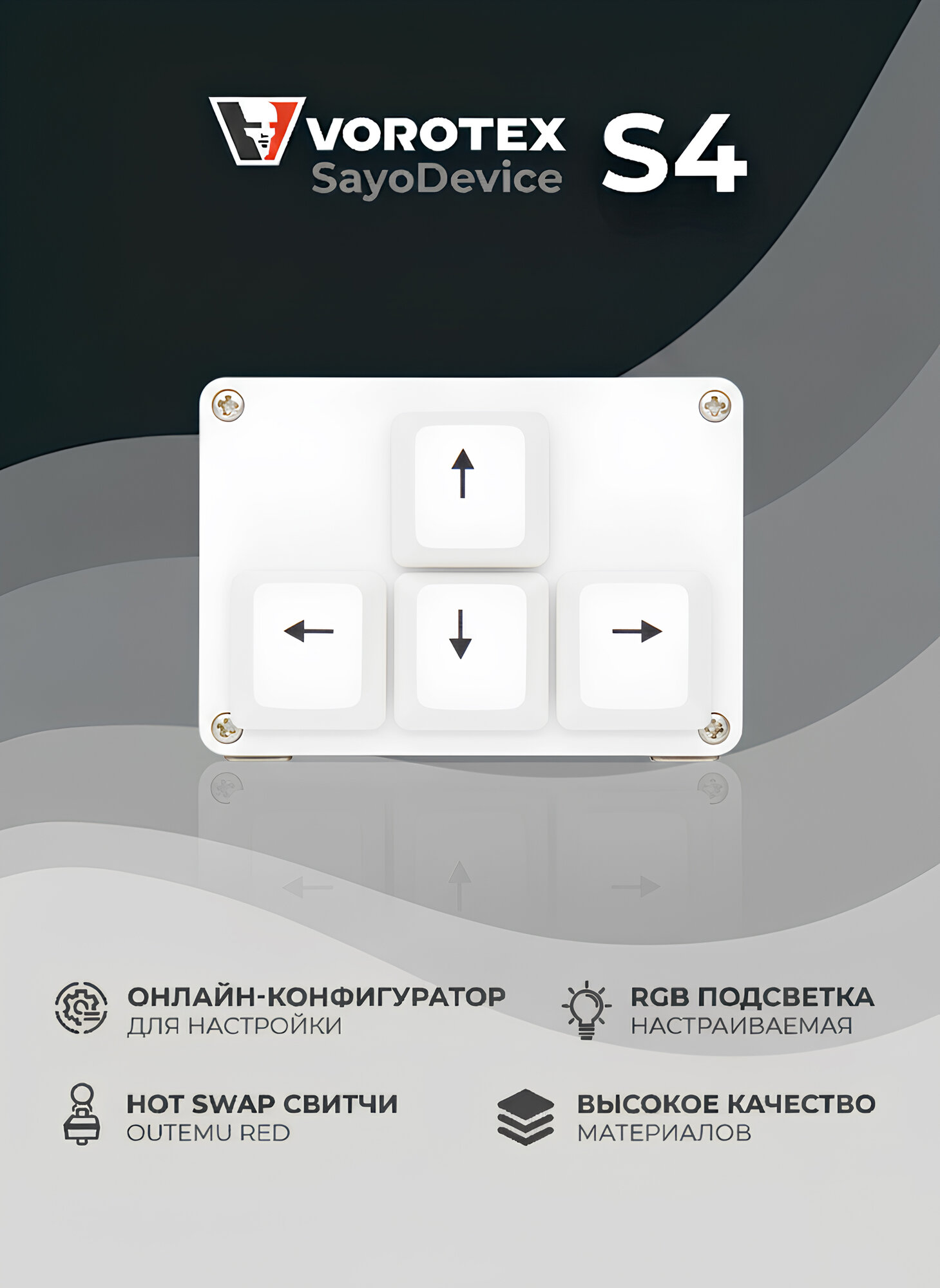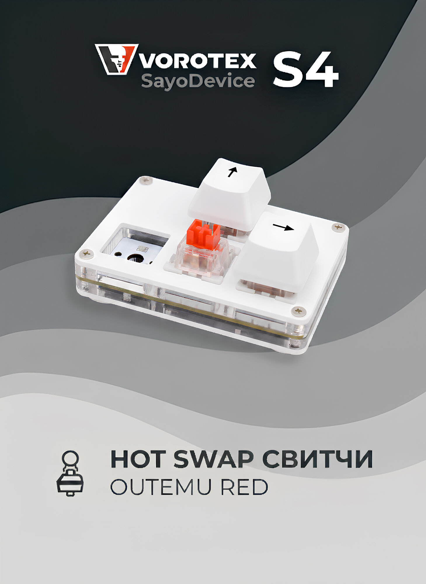 Игровая программируемая клавиатура VOROTEX SayoDevice S4 Outemu Red, белый: сравнение цен, характеристики, фото, актуальное наличие и цены.