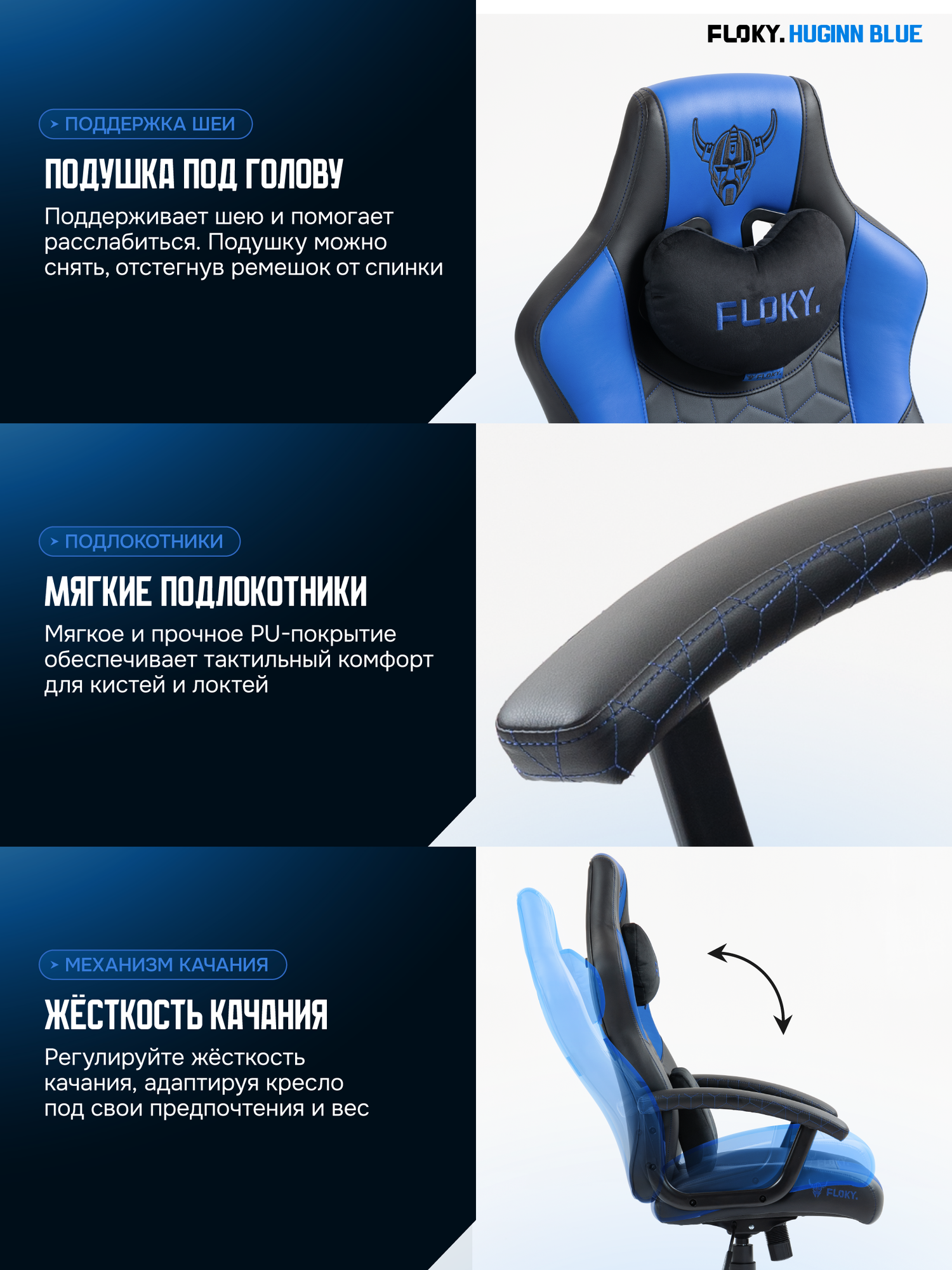 Купить Игровое компьютерное кресло FLOKY Huginn Blue, экокожа. Кресло для геймера с подушкой с эффектом памяти с доставкой по всей России. Игровое компьютерное кресло FLOKY Huginn Blue, экокожа. Кресло для геймера с подушкой с эффектом памяти: сравнение цен, характеристики, фото, актуальное наличие и цены.