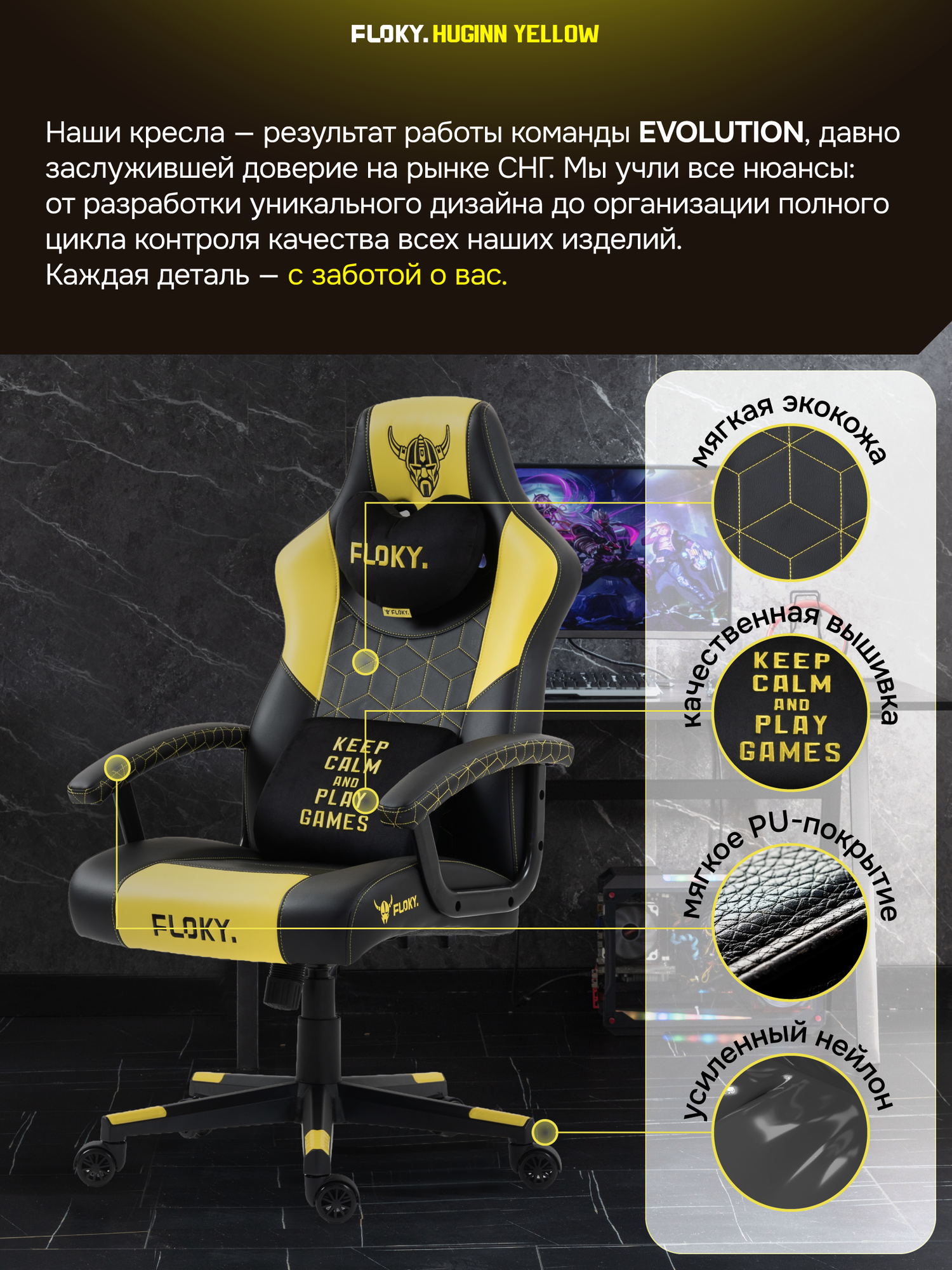 Купить Игровое компьютерное кресло FLOKY Huginn Yellow, экокожа. Кресло для геймера с подушкой с эффектом памяти с доставкой по всей России. Игровое компьютерное кресло FLOKY Huginn Yellow, экокожа. Кресло для геймера с подушкой с эффектом памяти: сравнение цен, характеристики, фото, актуальное наличие и цены.