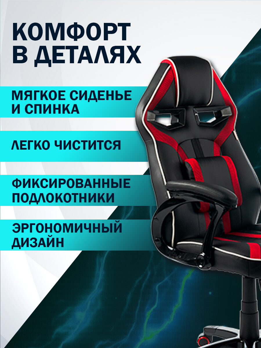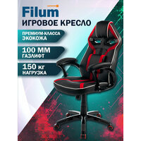 Игровое кресло Filum FL-CH-G-020, обивка экокожа, черно-красное, с подлокотниками: сравнение цен, характеристики, фото, актуальное наличие и цены.
