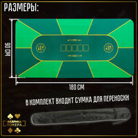 Уникальное сукно для покера зелёного цвета большого размера с разметкой на 6-10 игроков - сворачивается в рулон и убирается в водонепроницаемую переносную сумку-тубус.